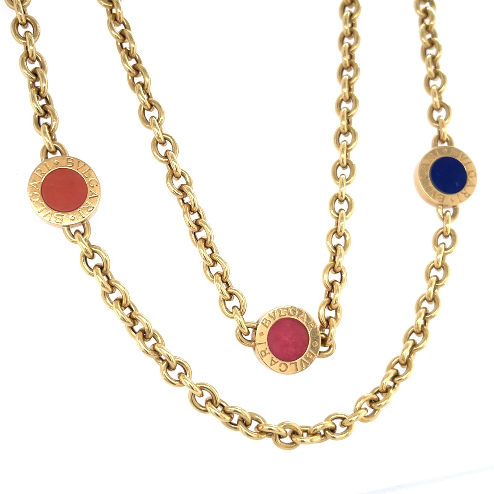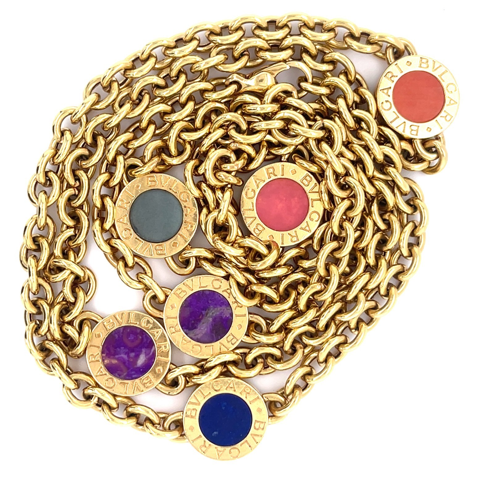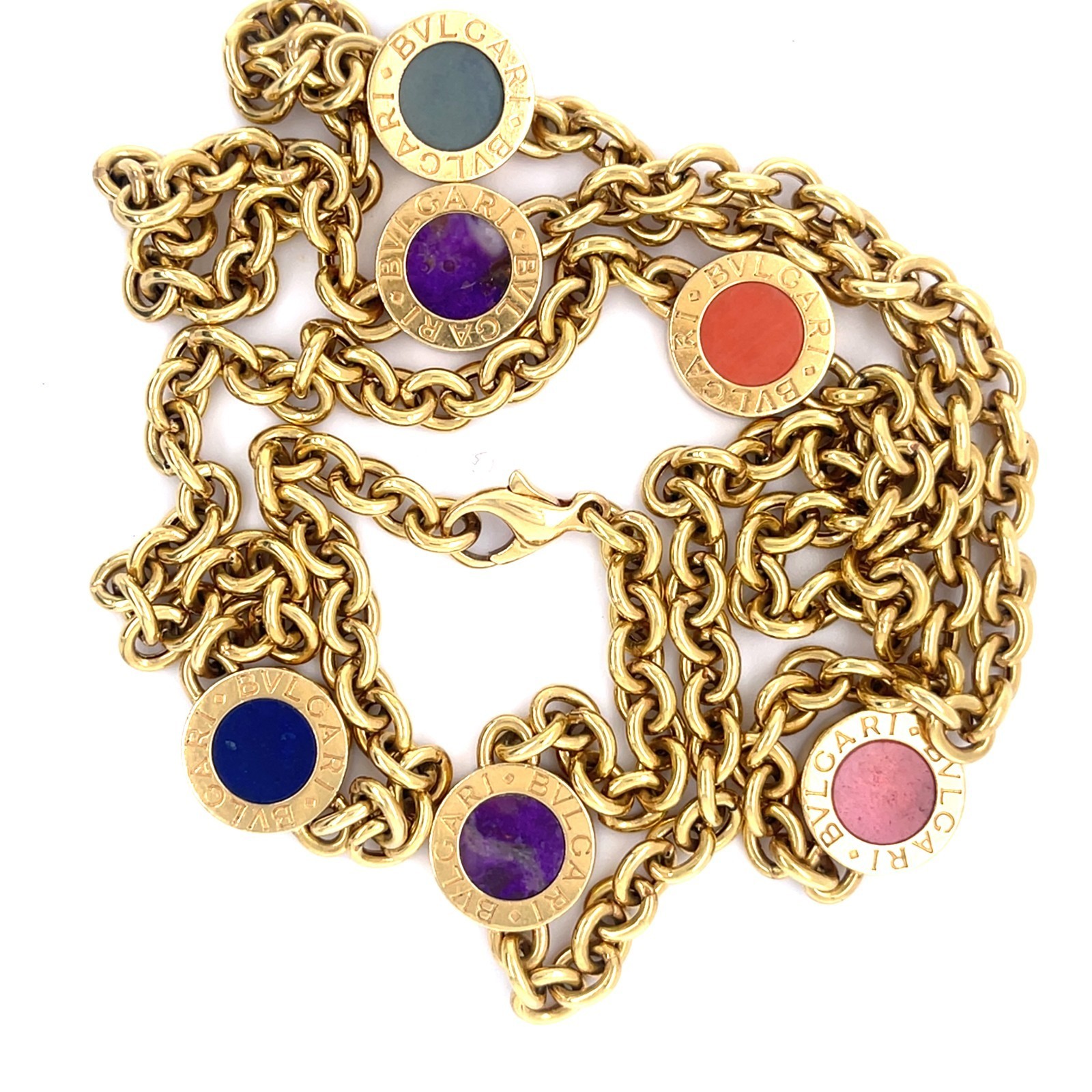 Bulgari Bvlgari 18k Oro Giallo Semi-Preziose Gemma Catenina 80cm