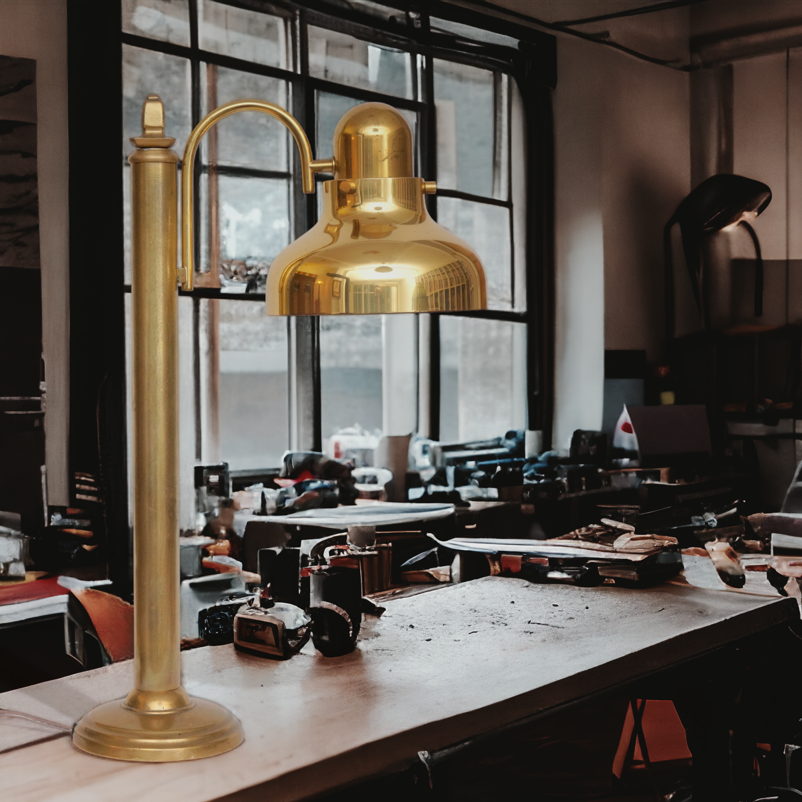 Brass working light "Functional Crane" in the trendy "Form Follow Function" Bauhaus style.