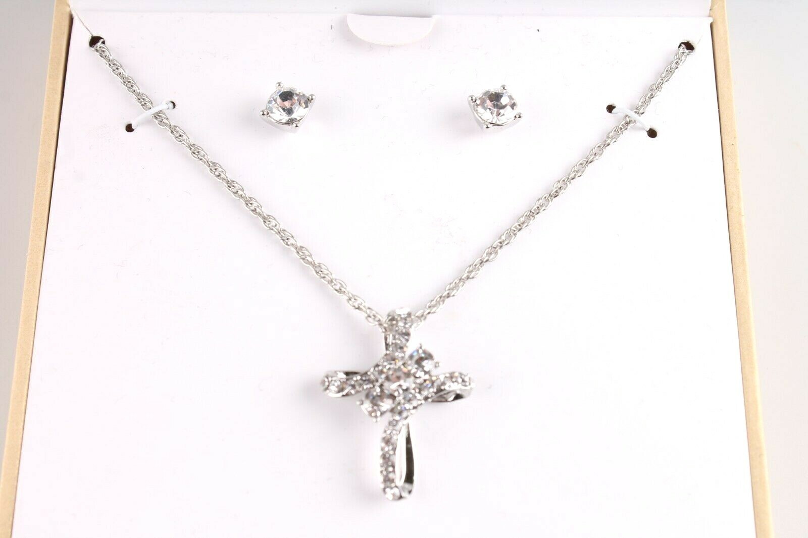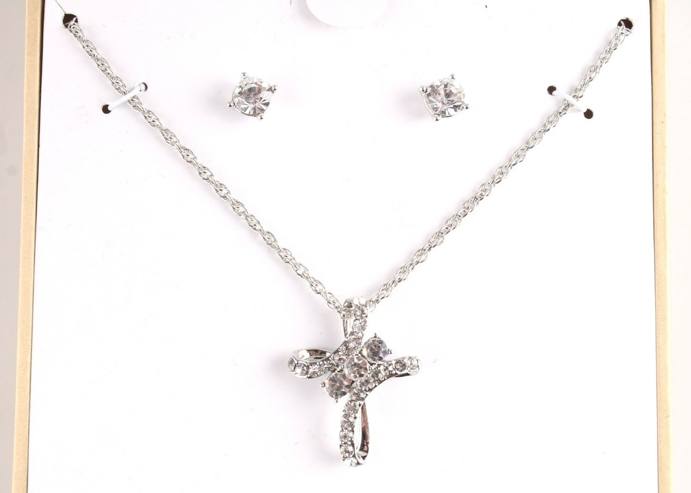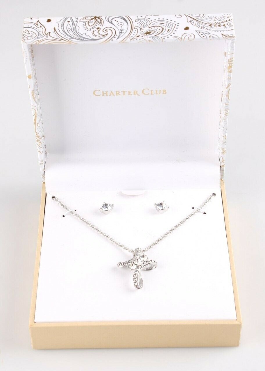 This is for a brand new in gift box Charter Club Silver-Tone Crystal Cross Pendant Necklace Earring Set