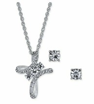 Charter Club Silver-Tone Crystal Cross Pendant Necklace Earring Set New in Box