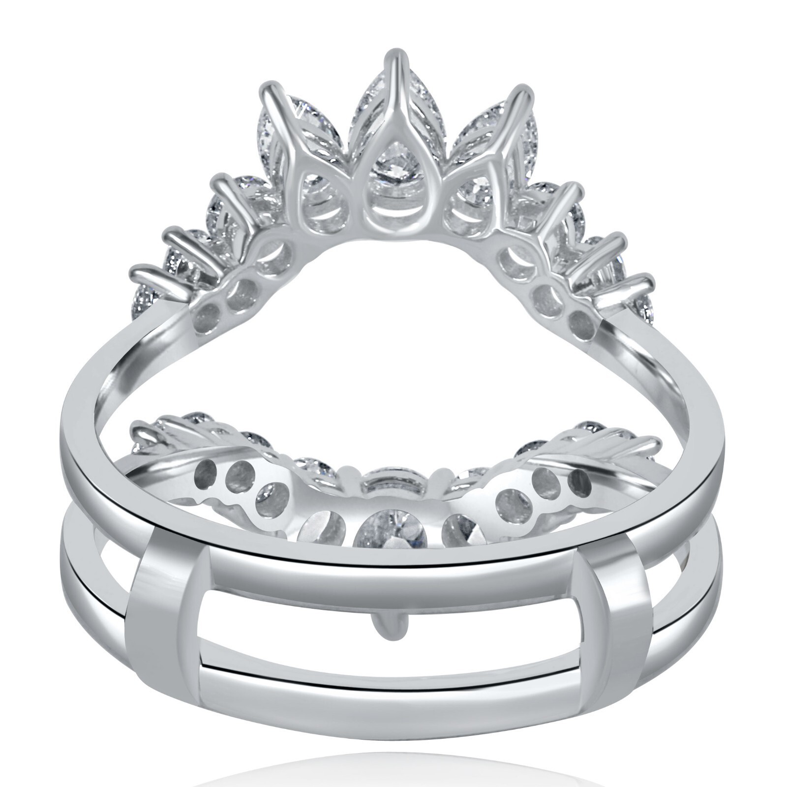 Enhance the glorious Sparkle of your engagement ring with this beautiful 1.20 carat pear shaped and round cut lab grown diamond tiara guard ring in 14k white gold.