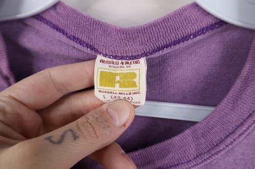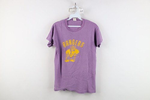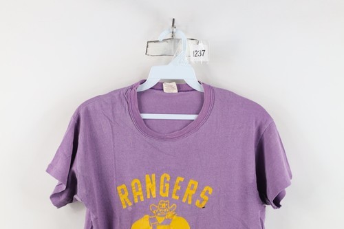 Vintage 70s Russell Athletic Womens Large Thrashed Rangers T-Shirt Purple USA