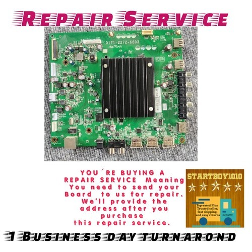 Repair Service This sale is for a REBUILD SERVICE on your main board. You will have to send your part to us for repair. We will rebuild and mail the part back to you within 48 hours after receiving the part. We use USPS Priority Mail service which takes additional 2-3 business days for delivery. After your purchase you must call for my contact information. we will not give any personal information so please call for our address were you can send your board for repairing. When you ship your board to us for repair, please let us know the tracking number from the receipt We don't repair burned boards, missing parts or If your board has been repaired or replaced parts . We have the same TV to test your board We will make sure your BOARD is in working condition and send back to you We have been in business for over 25 years to repair tv lcd dlp plasma. In most cases we can repair the defective board, however if your board can't be repaired, ( no repairing fee) ABOUT THE WARRANTY: UNLESS SPECIFIED OTHERWISE, ALL OF OUR PARTS ARE WARRANTIED FOR 30 DAYS. AGAINST REPEAT IDENTICAL FAILURE FROM THE DATE OF RETURN SHIPPING. THANKS FOR READING AND WE LOOK FORWARD TO DOING BUSINESS WITH YOU Track Page Views WithAuctiva's FREE Counter Track Page Views WithAuctiva's Counter