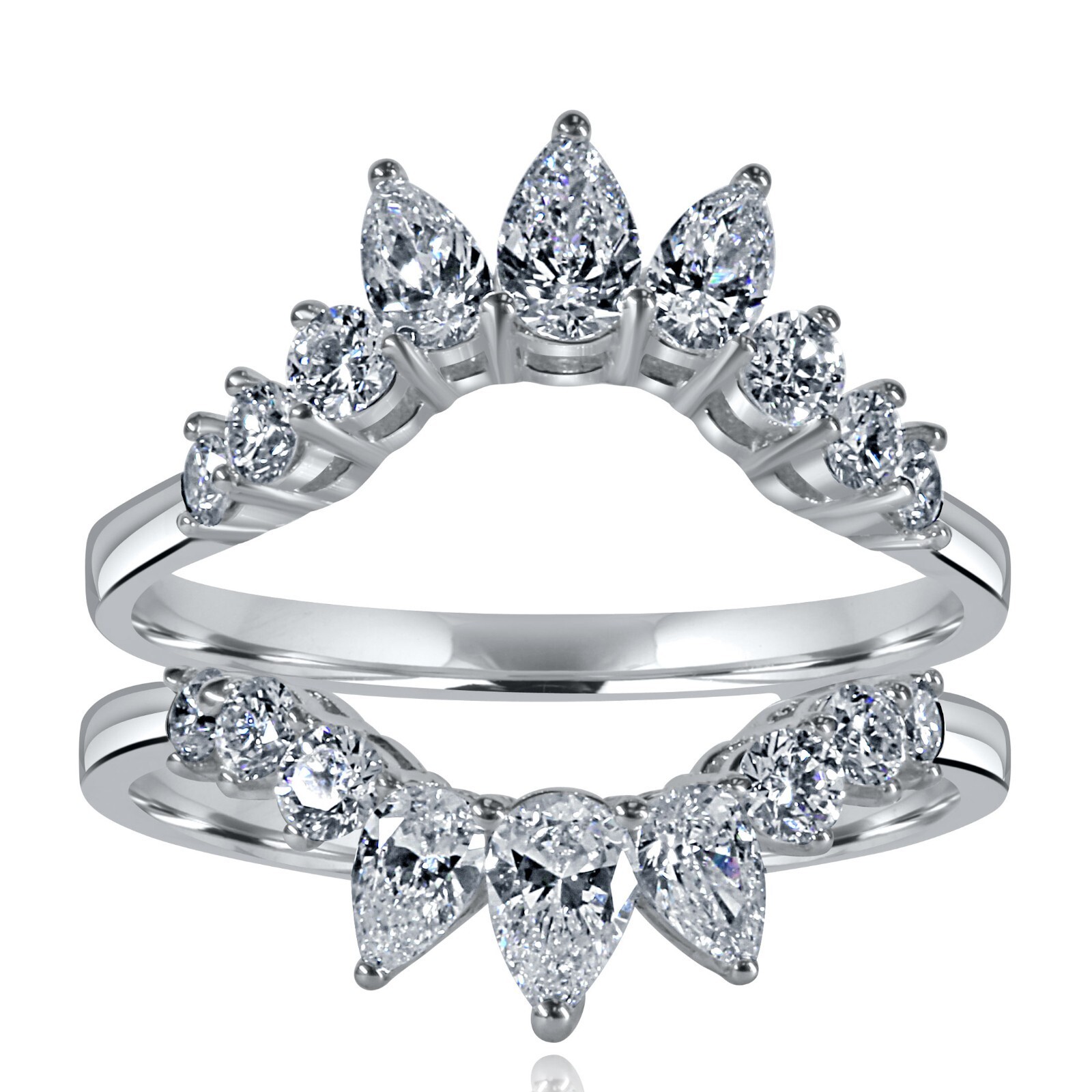 Verbessern Sie das glorreiche sparkle Ihres Verlobungsrings mit diesem wunderschonen 1.20 karatisch geformten und runden geschnittenen Labor, das Diamond Tiara Guard Ring in 14.000 Weißgold.
