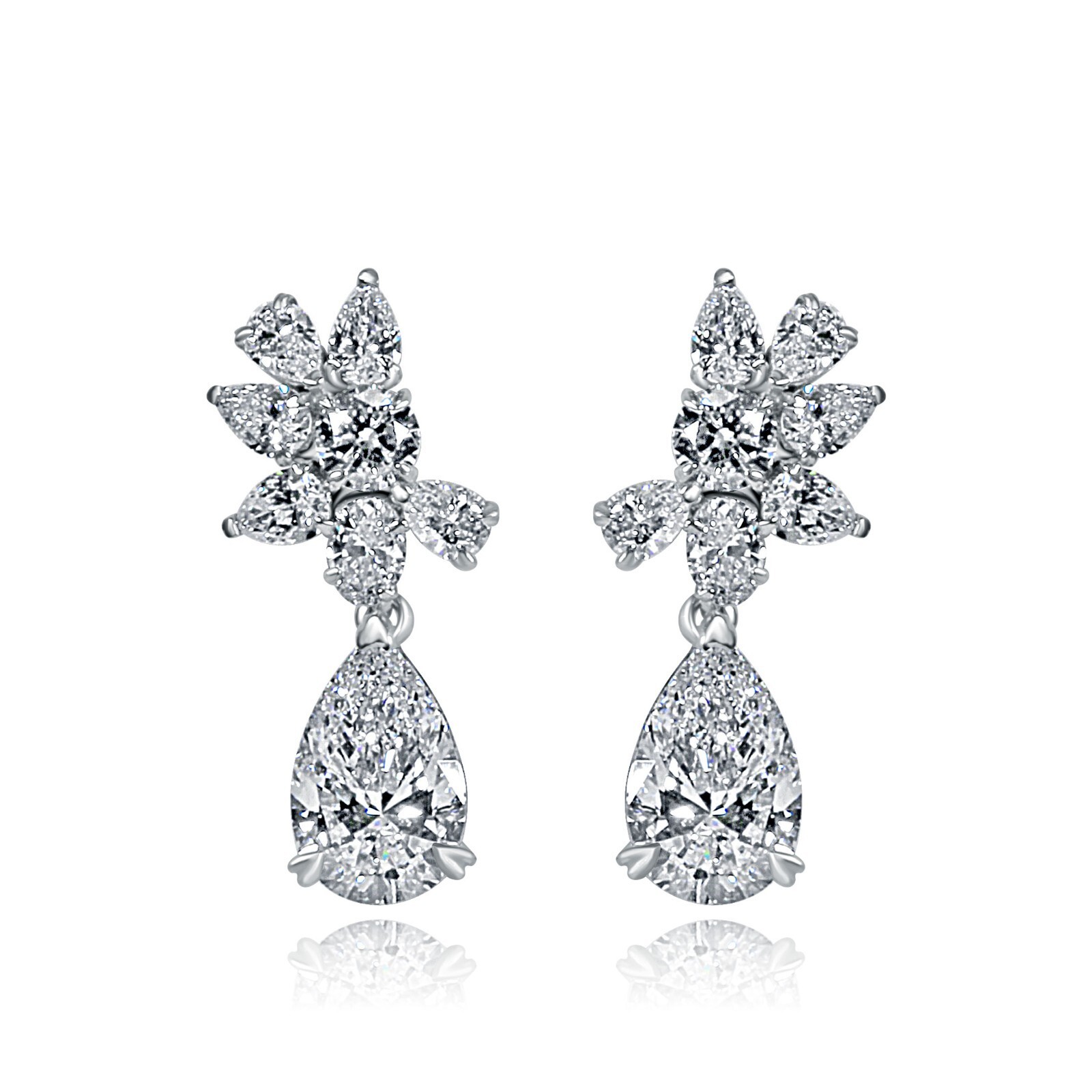 Estos pendientes exquisitos cuentan con diamantes de laboratorio de corte brillante de pera que colgan elegantemente, agregando un toque de sofisticacion a cualquier conjunto nupcial o formal. Pear Brilliant Cut Lab Grown Diamonds, conocidos por su excepcional sparkle y elegancia atemporal. Diamantes de corte de corte brillante, pera y ovalado adicionales mejoran el brillo general y el fuego de los aretes.