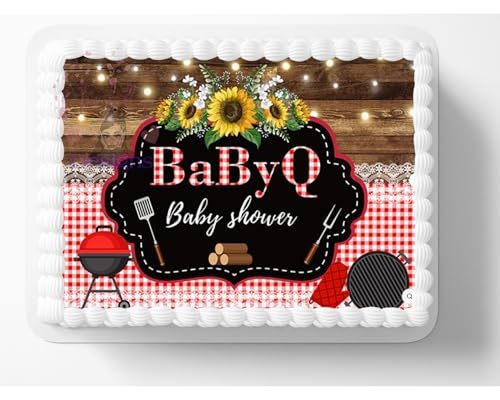 Bar B que Baby Shower Theme Baby -Q Edible Image Cake Topper, Frosting Sheet, Ca