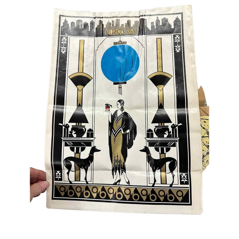 2 VTG Bloomingdales Paper Bags Laurie Rosenwald 1981 Christmas 1980 ARt Deco