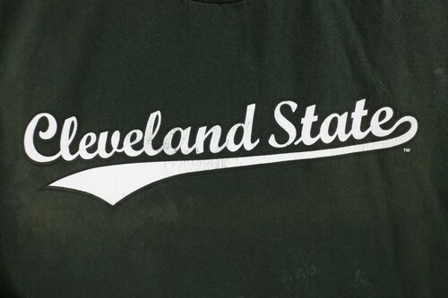 Vintage 90s Mens XL Thrashed Spell Out Cleveland State University T-Shirt Green
