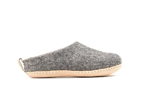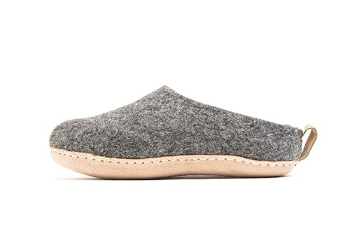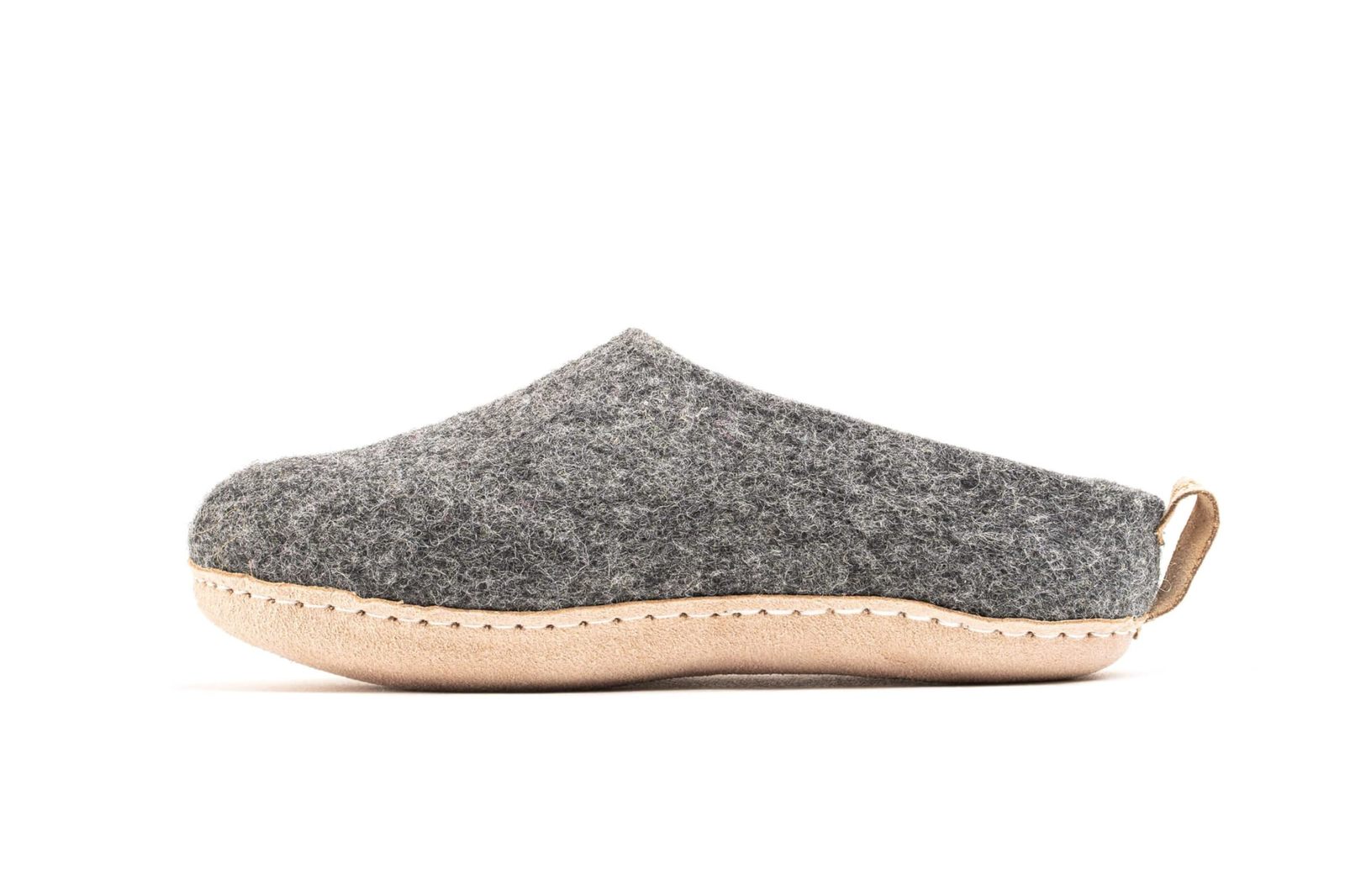 Woolly's Indoor Open Heel Slippers With Leather Sole (Charcoal) - 41 | Premium N