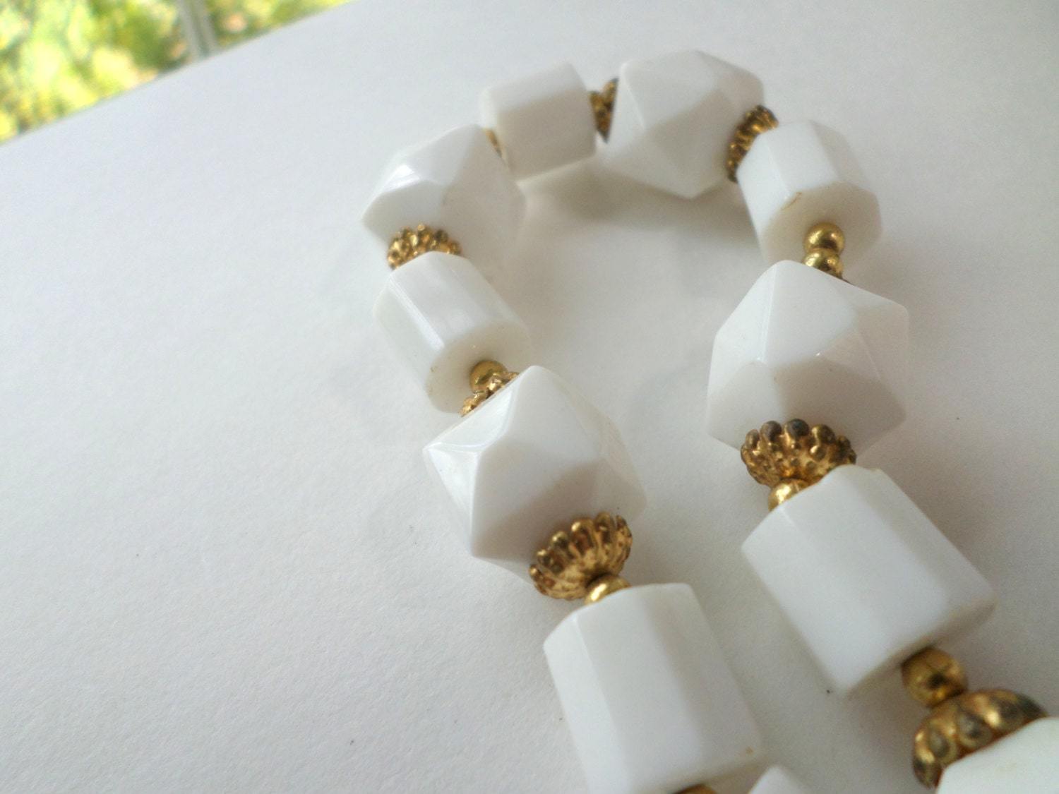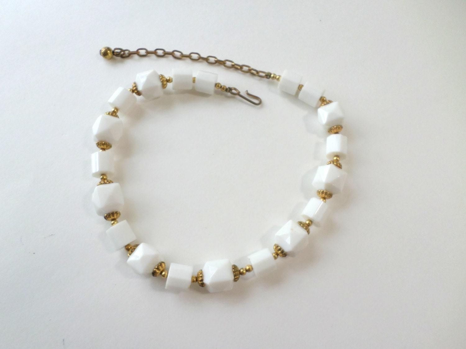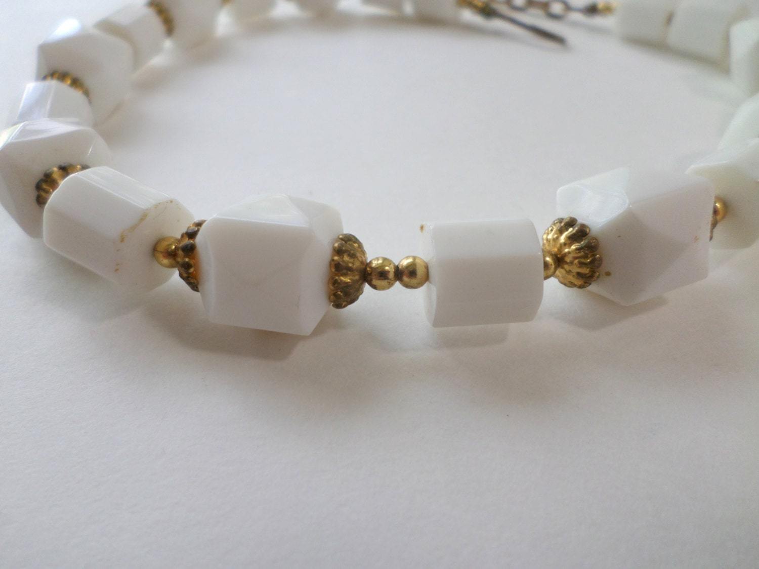 ?Style/Features: Perfect white choker with unique square lucite beads. Lightweight for all day, or night, wear.