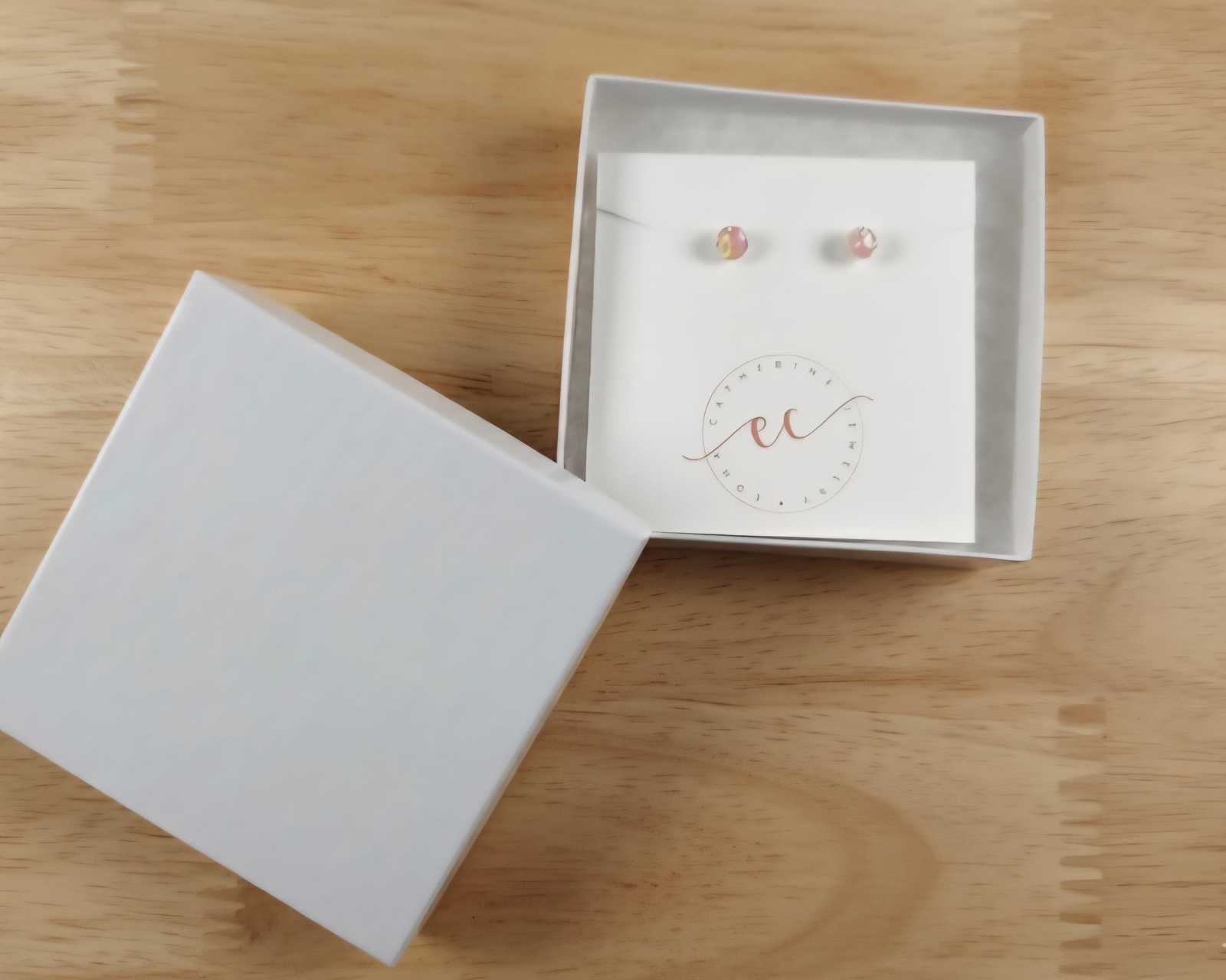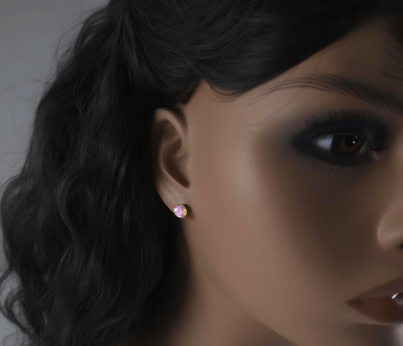 ?Style/Features: lab created pink opal studs, original backs, ship on earring card in box ready for a bow for gift giving