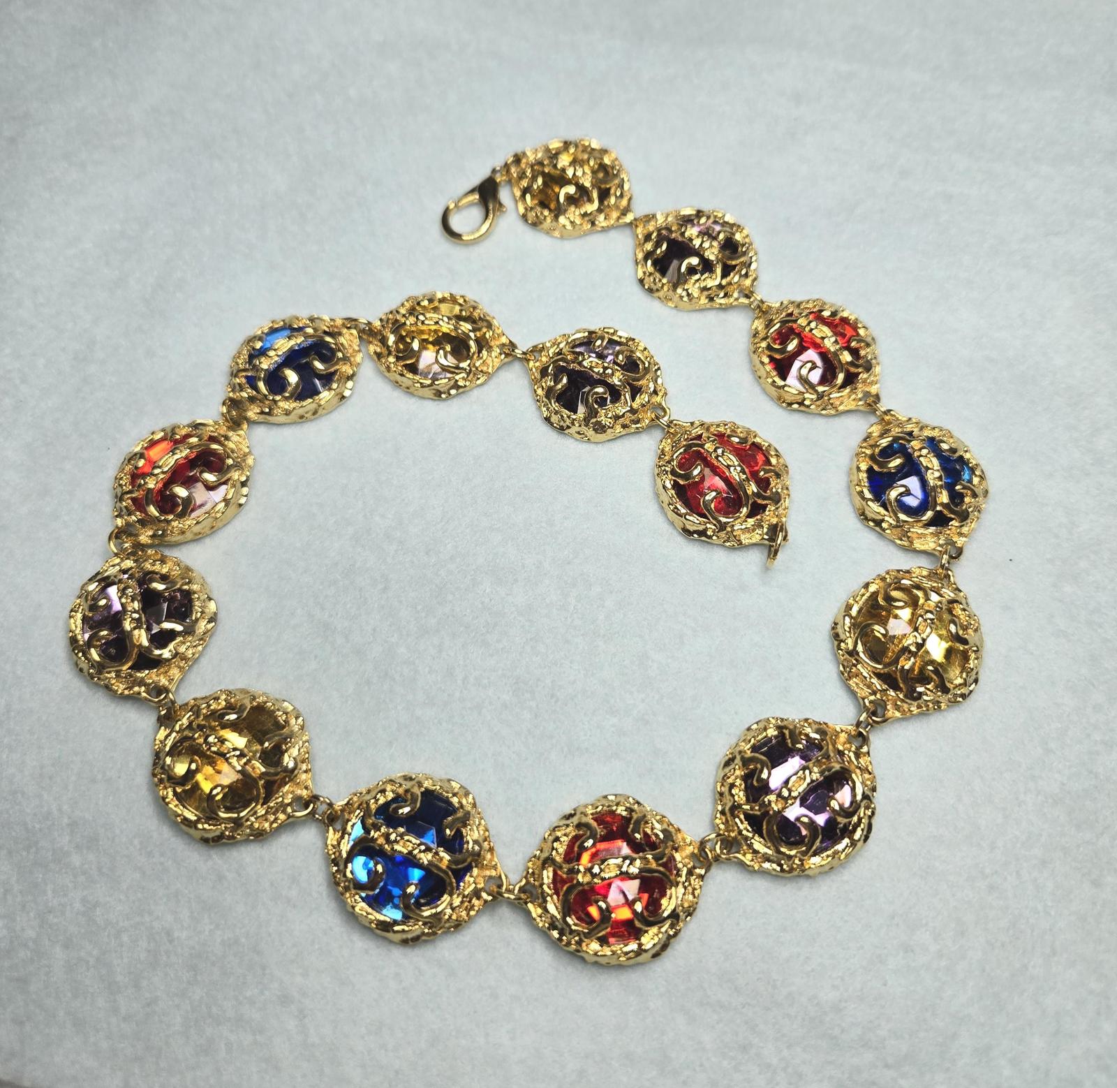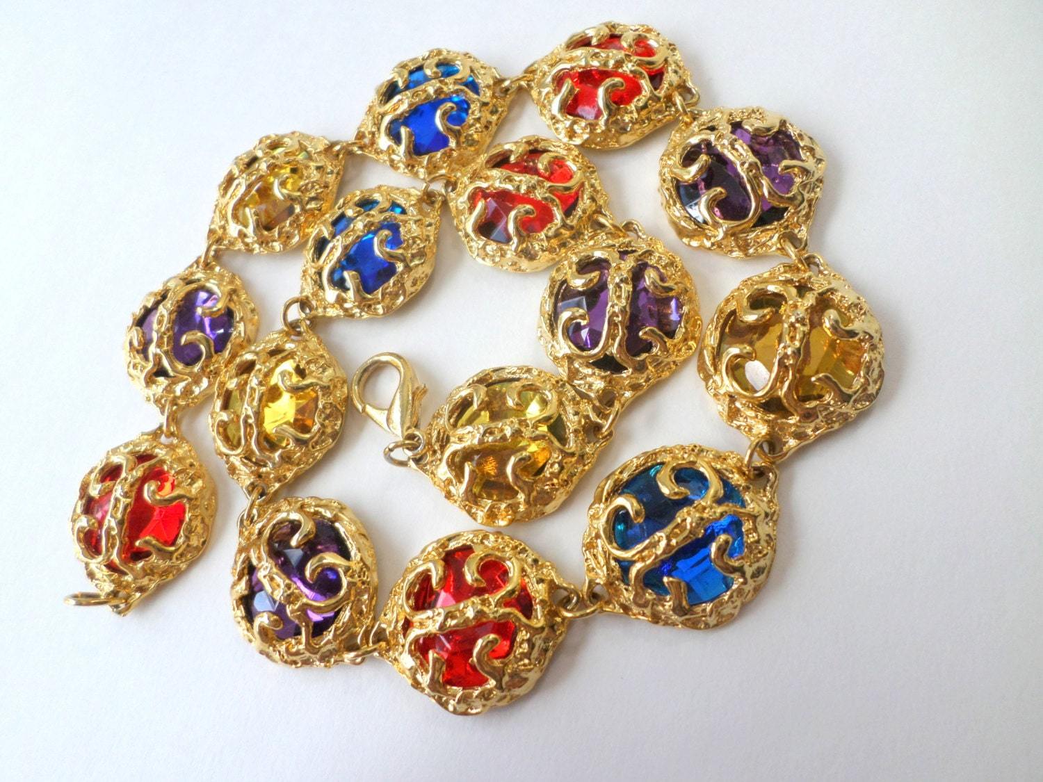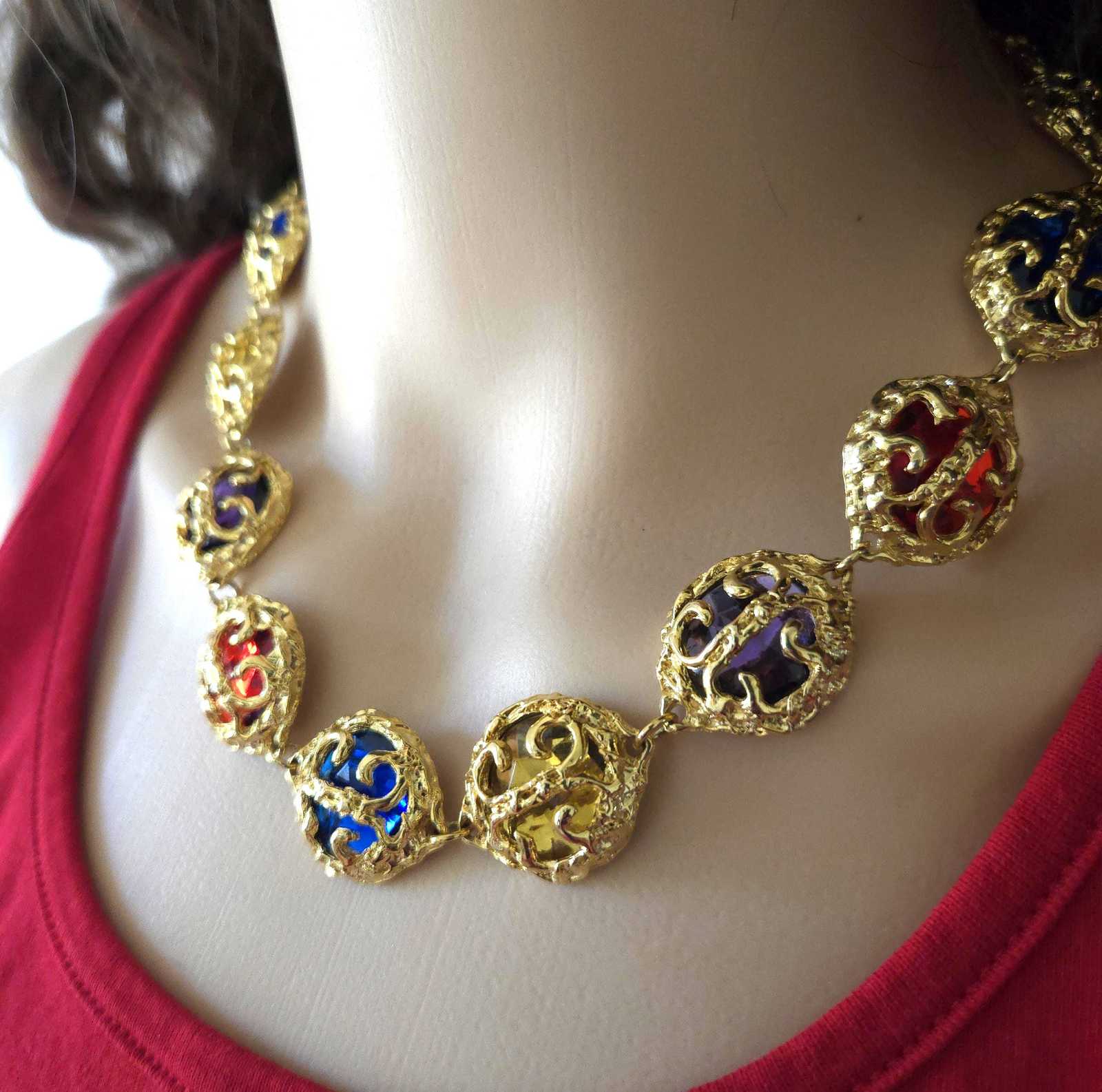 Jewel Tone Caged Rhinestone Chunky Necklace and 48 similar items