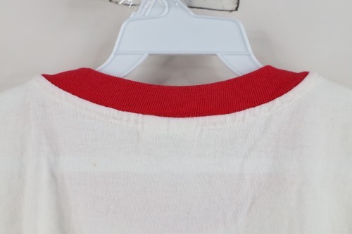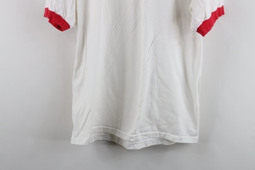 Vtg 90s Streetwear Mens Large Blank Short Sleeve Ringer T-Shirt White Red USA