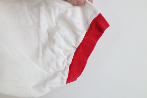 Blemish back top. Has color bleeding on sleeves and collar. Has color fade. USA made