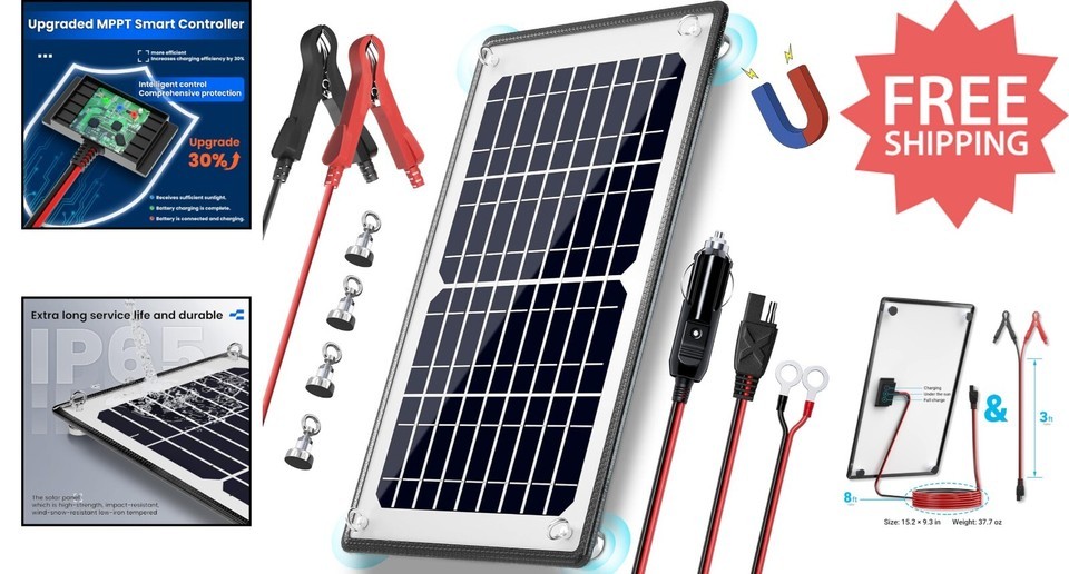 10W 12V Magnetic Solar Trickle Charger with MPPT Controller - Waterproof Design