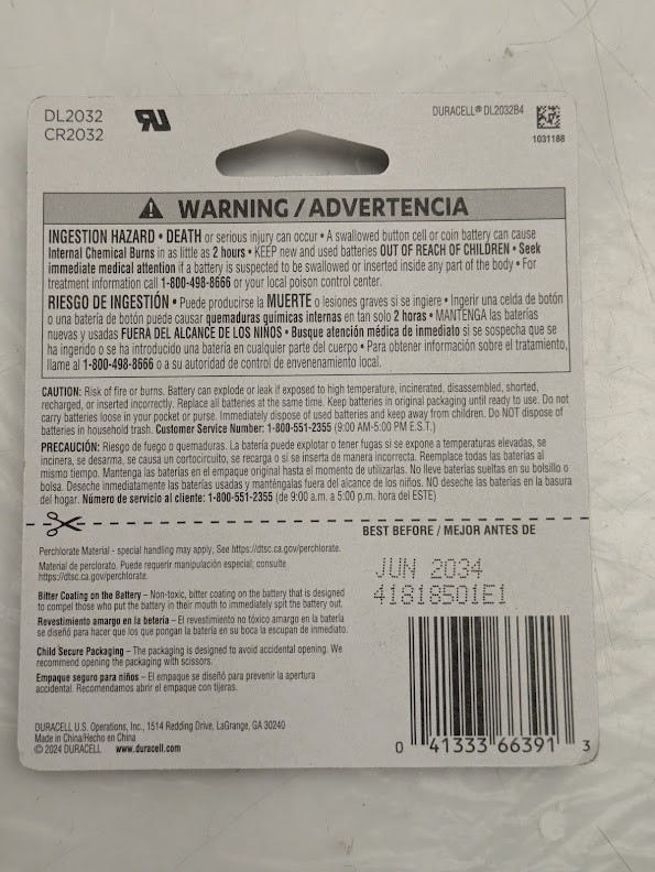 Child Safety Features: With a non-toxic, bitter coating to discourage swallowing and child-secure packaging, Duracell prioritizes safety for their lithium coin batteries.