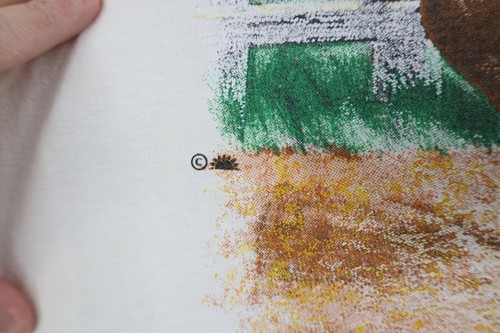 Blemishes front bottom. Pilled. Has color fade. USA made