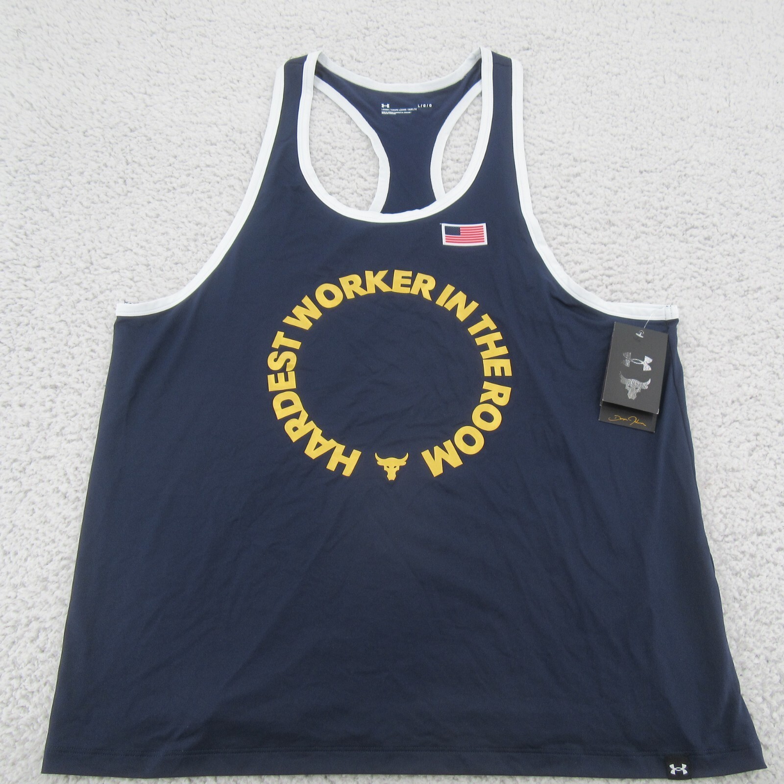 Under Armour Project Rock RWB USA Muscle Tank Top Mens Size Large Blue NEW