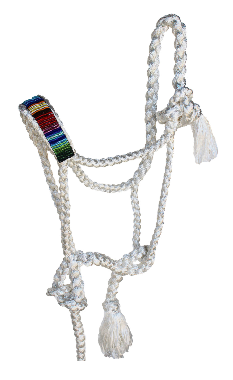 Nylon Horse Western Beaded Noseband Braided Mule Tape Halter Lead Rope 606RT40WH