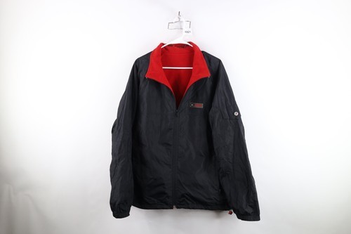 Vtg 90s Tommy Hilfiger Mens XL Reversible Reflective Fleece Windbreaker Jacket