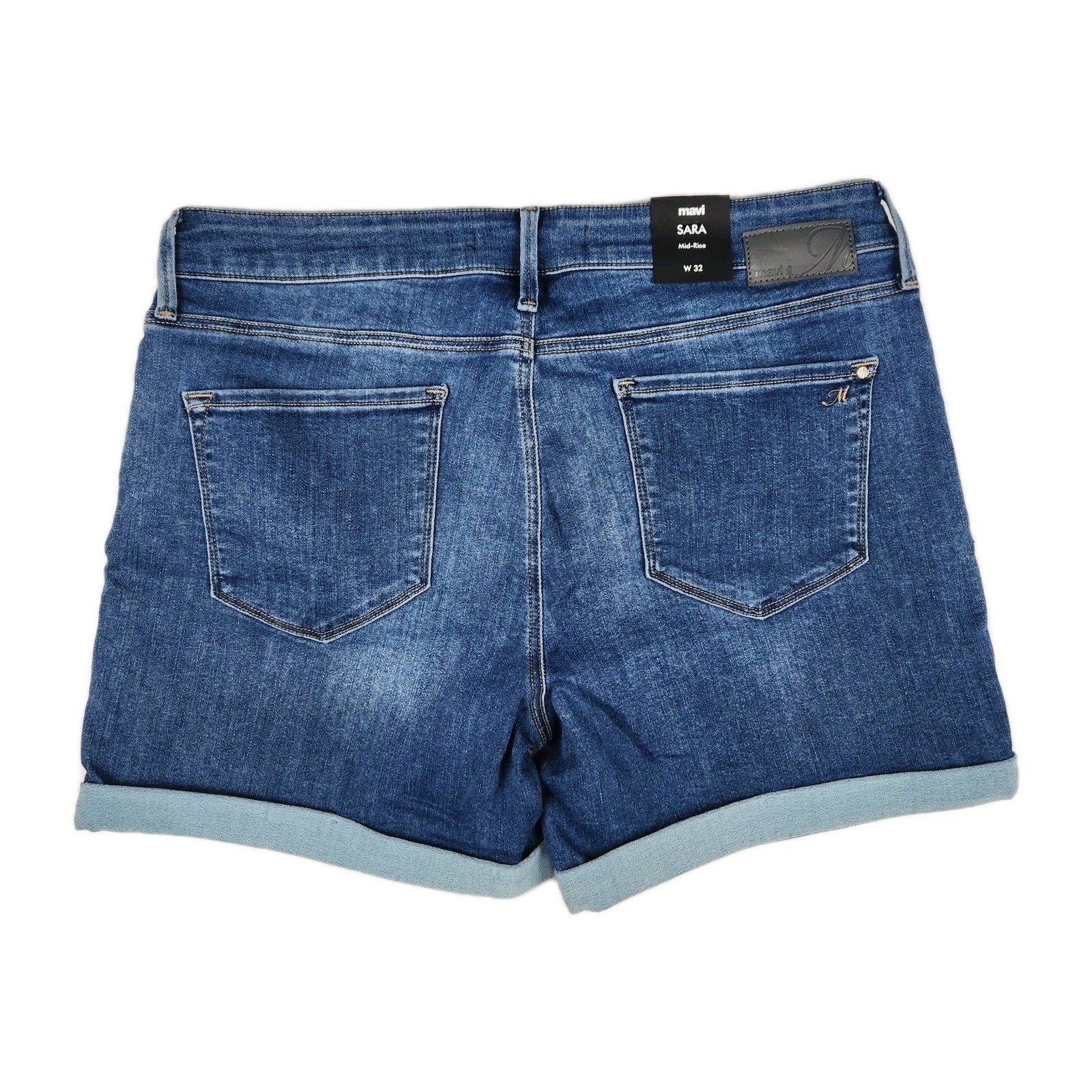 The Mavi Shorts for women in size 32 are the Sara Mid Rise Supersoft Blue denim bottoms, featuring a boyfriend style with a cuffed hem. Made from a blend of polyester, spandex, cotton, and cotton denim fabric from Turkey, these shorts are perfect for the spring season. The mid-rise fit and red color make them a versatile and stylish addition to any woman's wardrobe.