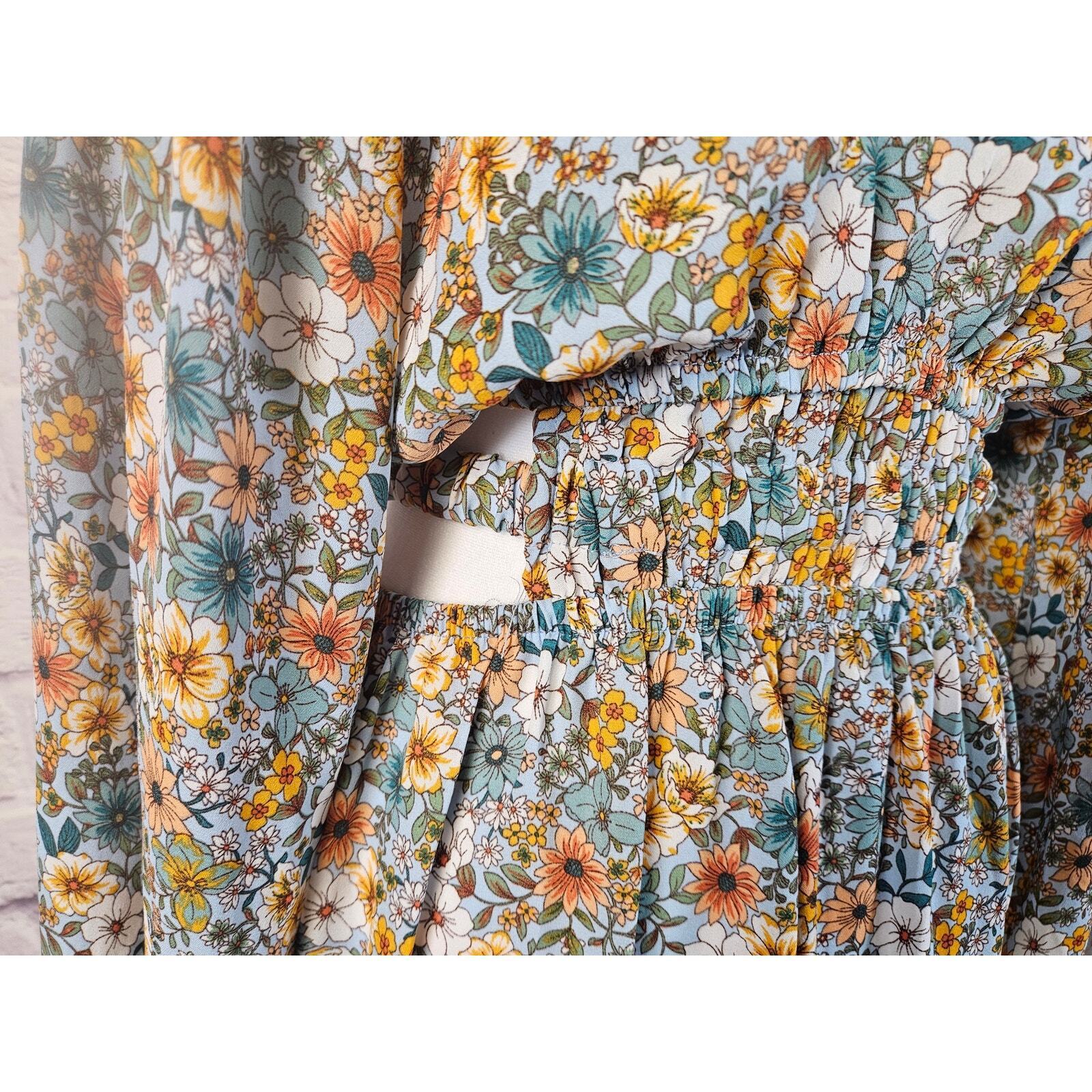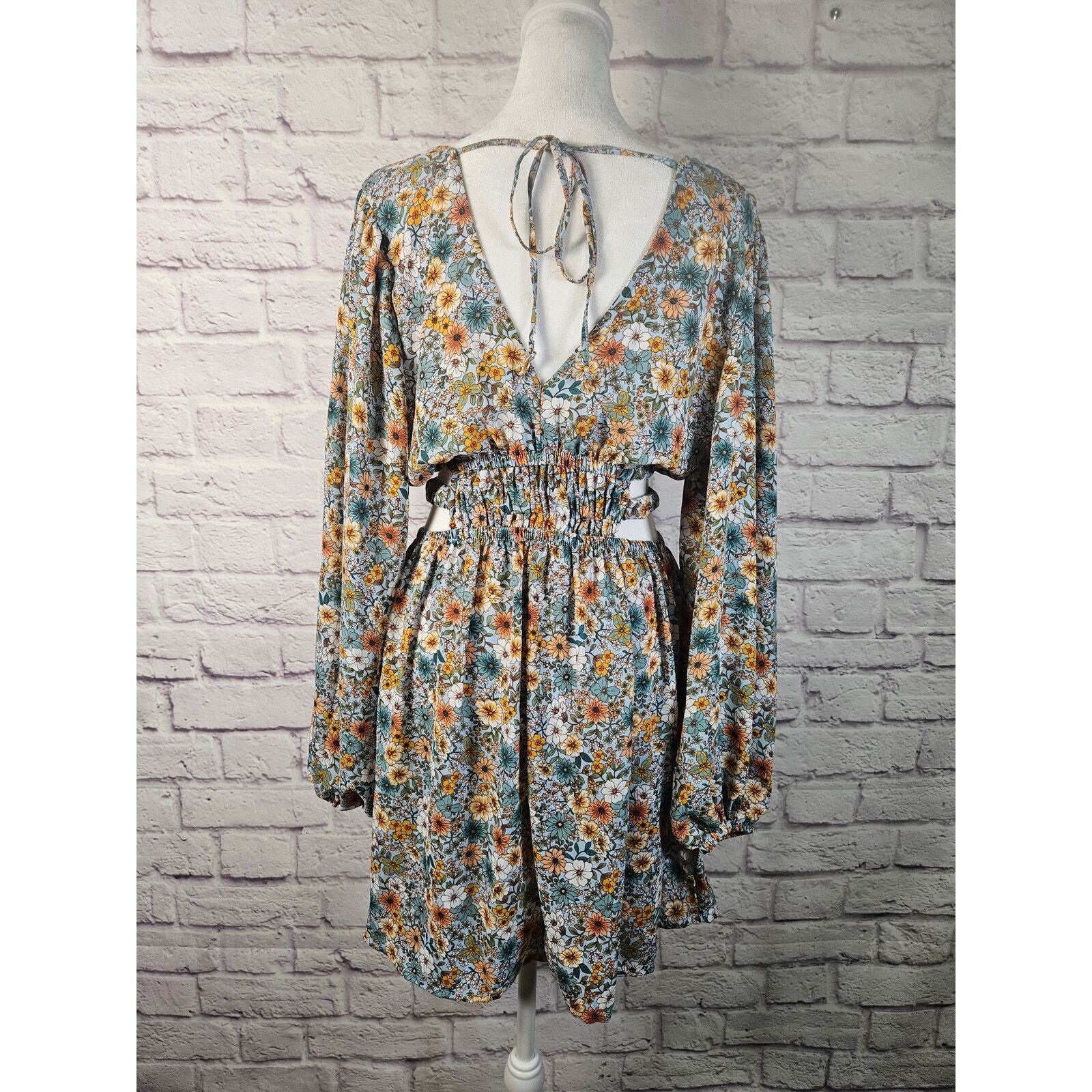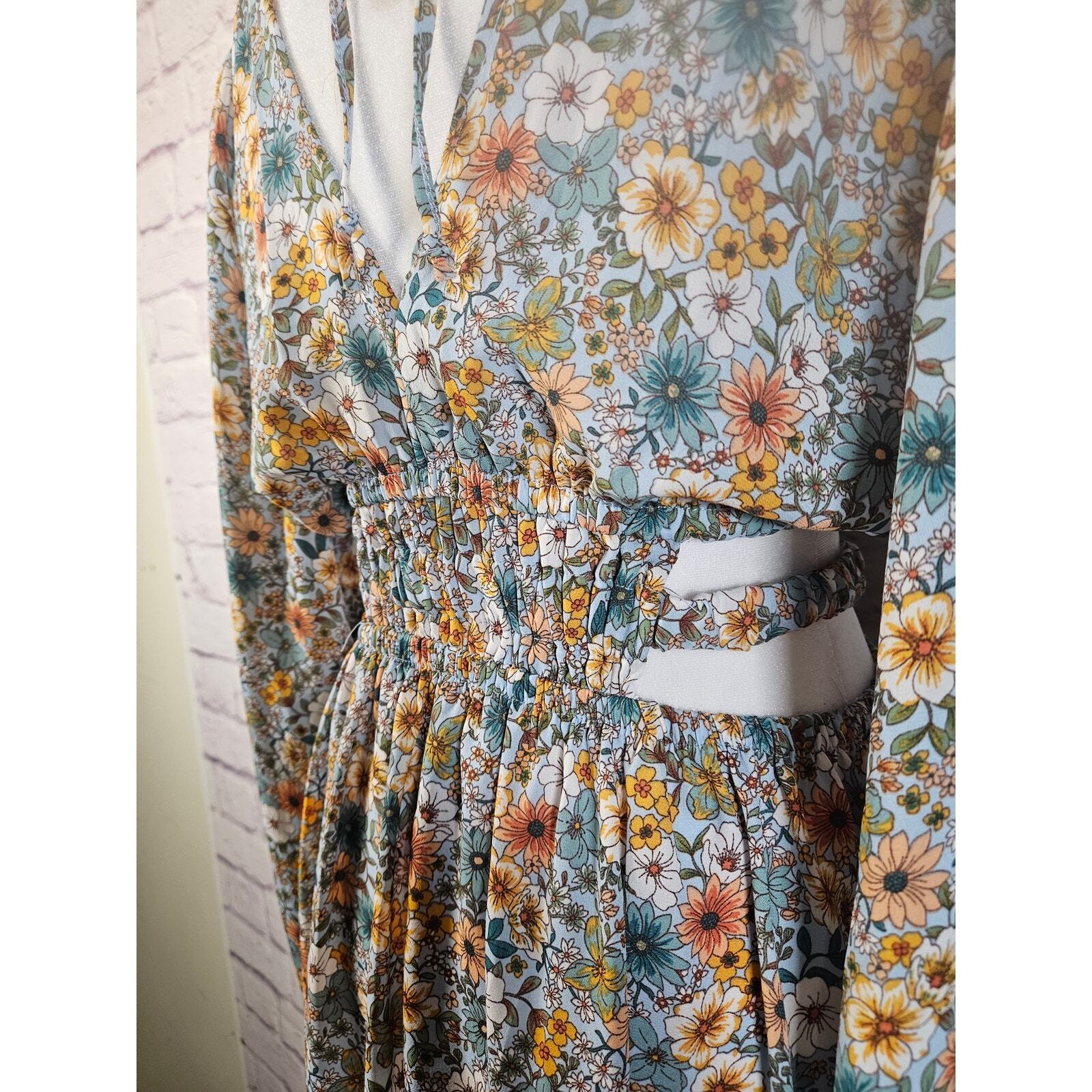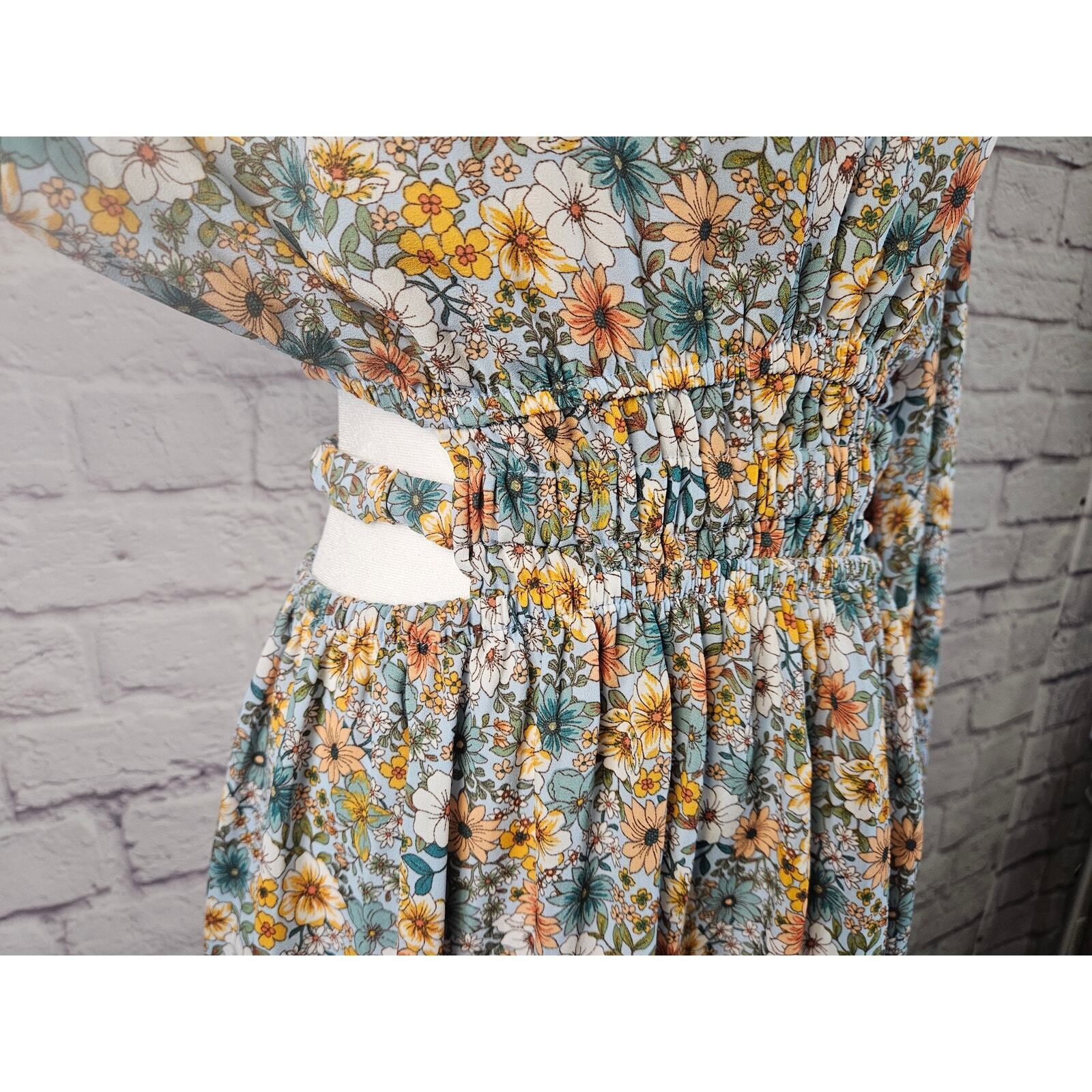 No Comment Womens L Floral Dress Side Waist Slits Puffy Sleeves Boho