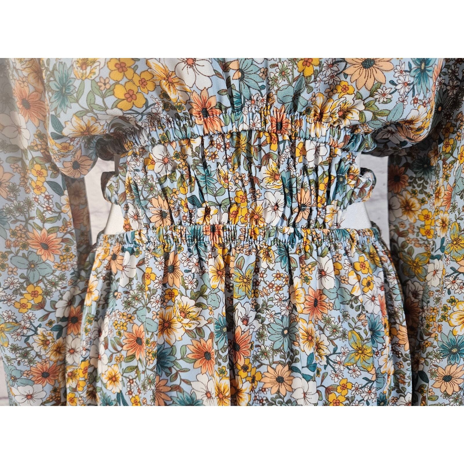 No Comment Womens L Floral Dress & Side Waist Slits Puffy Sleeves Boho