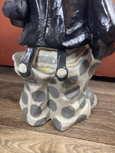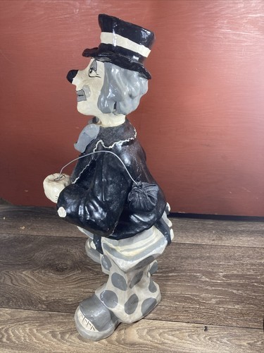Vintage 1970s Paper Mache Clown Black And White Hobo Clown