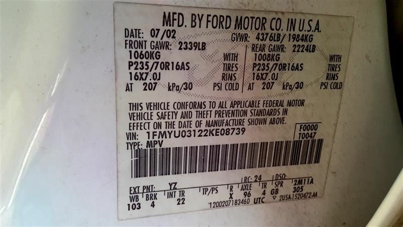 MAZDA TRIBUTE 01-04 Front; 6 cylinder, L.