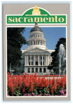 California State Capitol Dome Flowers Fountain Sacramento CA Postcard