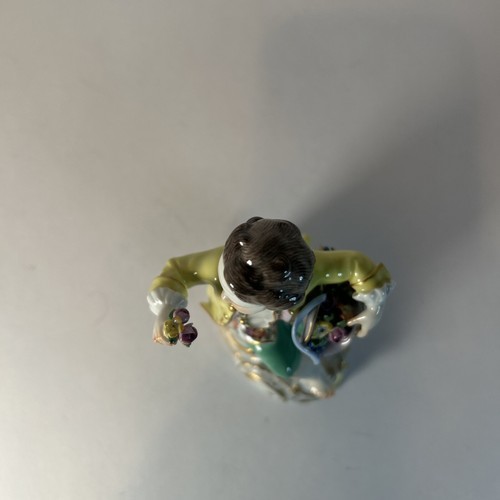 Antique Meissen Porcelain Figurine Boy with Flowers Yellow Coat ~5” Germany