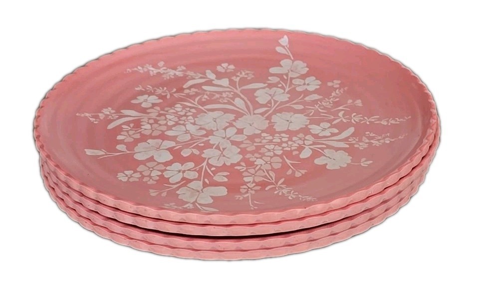 Four (4) Pioneer Woman ~ DAISY PINK ~ 8.6" Dia. ~ Melamine ~ Salad Plates