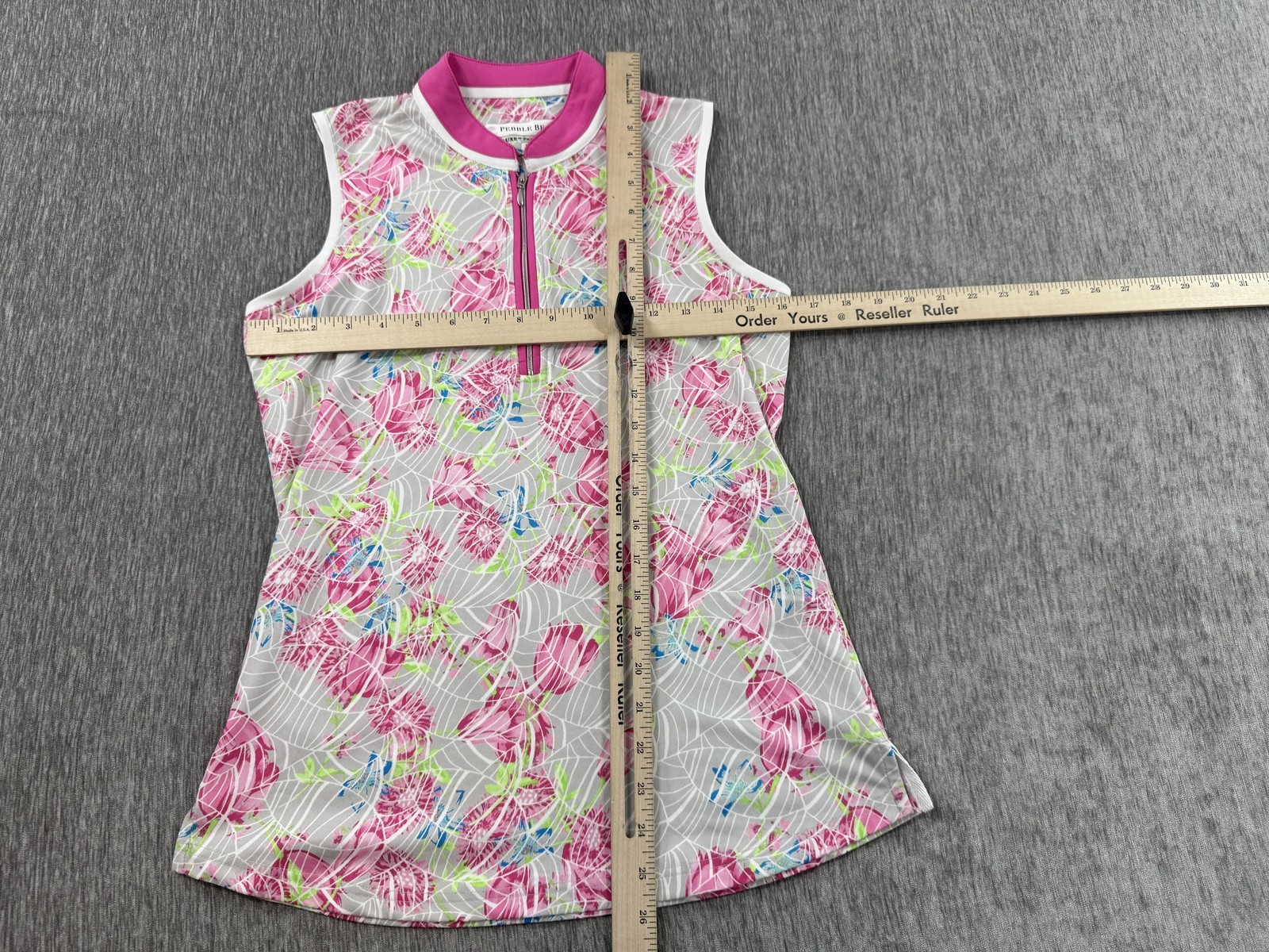 Pebble Beach Shirt Womens Small Pink White Floral Golf 1/4 Zip Sleeveless Tennis