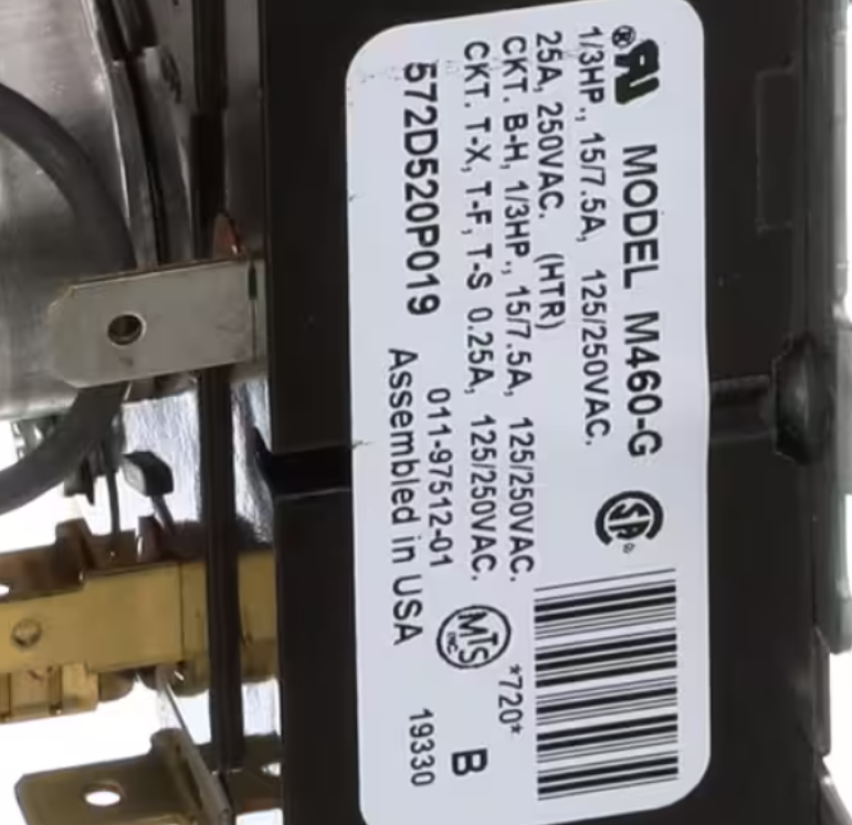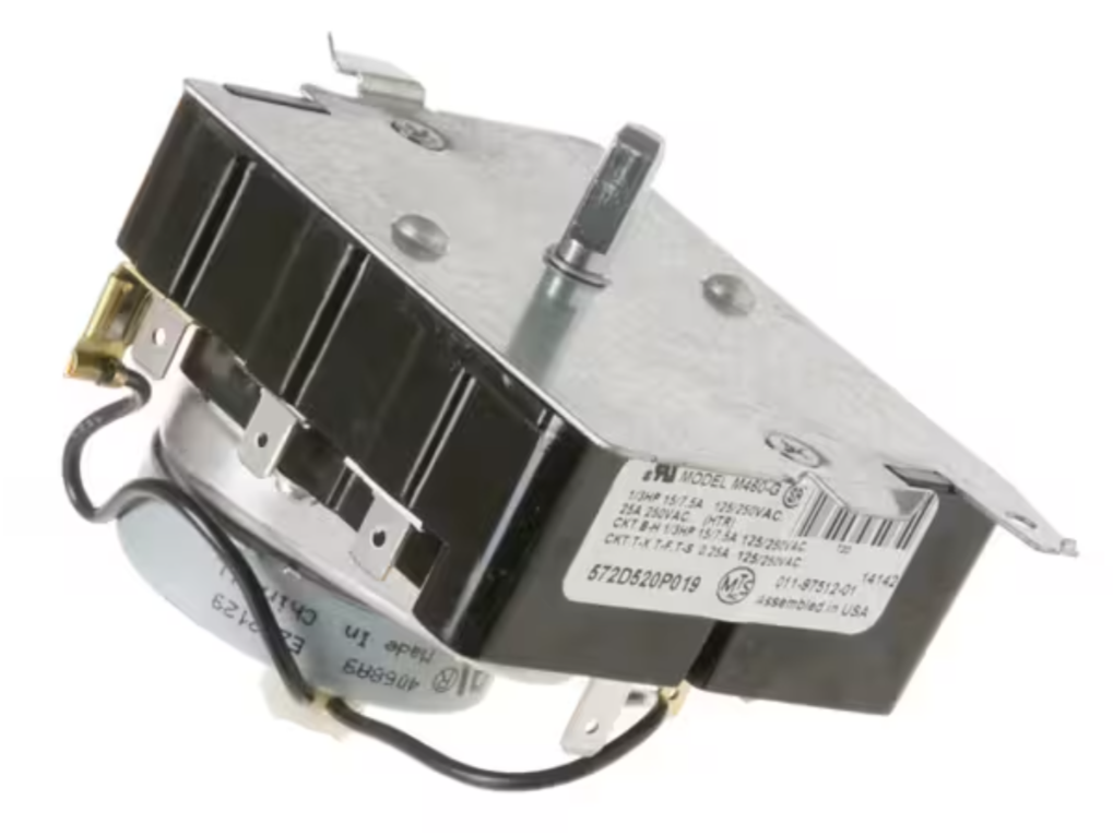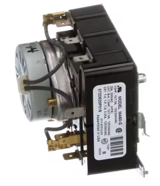 The GE Appliance M460-G (011-97512-01, 572D520P019) Timer is a genuine OEM replacement part designed to control the timed drying cycles in your GE dryer. This precision-engineered 60Hz timer regulates the start, stop, and duration of drying operations for consistent performance and optimal results. It ensures accurate cycle sequencing, dependable operation, and compatibility with a wide range of GE dryer models.