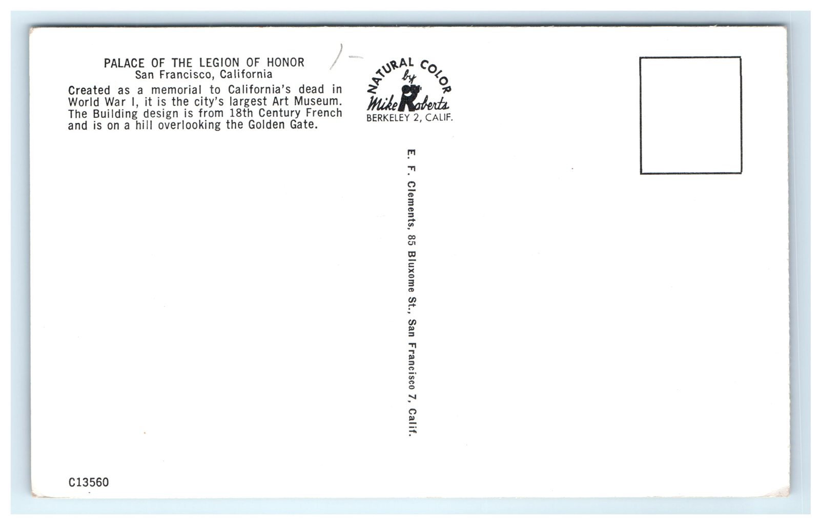 Palace of the Legion of Honor San Francisco CA Vintage Chrome Postcard