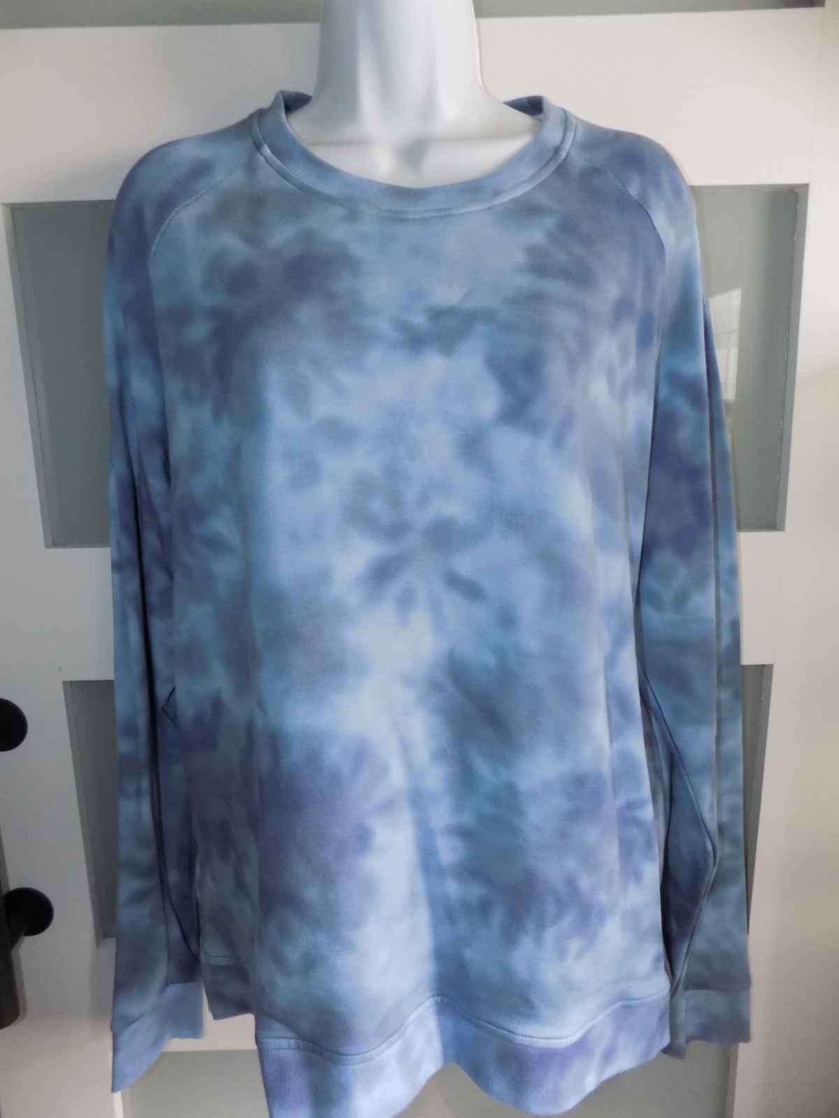 The Little Bum Bums Sapphire Tie Dye Mama Crew Neck Sweatshirt in size 2XL is a stylish and comfortable addition to any woman's wardrobe. Made from a blend of spandex and bamboo jersey fabric, this pullover sweatshirt features a crew neck and long sleeves, perfect for casual wear or traveling. The blue tie-dye design adds a fun and vibrant touch, while the oversized fit provides a relaxed and cozy feel. Machine washable for easy care, this sweatshirt from the brand Little Bum Bums is a versatile and trendy choice for any occasion.