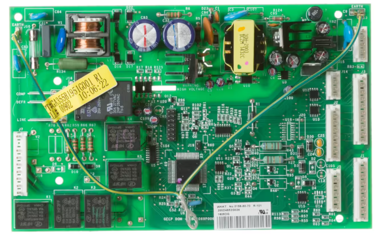 The GE Appliance GEA6158-00 (R-101, 200D4852G024) Main Control Board is a genuine OEM electronic control unit that manages and coordinates key refrigerator functions including temperature regulation, defrost timing, compressor operation, and fan control. Designed for precision and reliability, this board ensures consistent cooling performance, energy efficiency, and smooth operation across all cycles. Built to GE?s exact engineering standards, it is a perfect replacement for malfunctioning or damaged control boards.