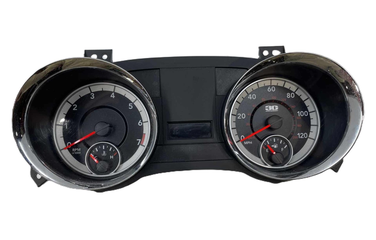 Interchange: (cluster), 120 MPH, vehicle information center, brushed metallic trim