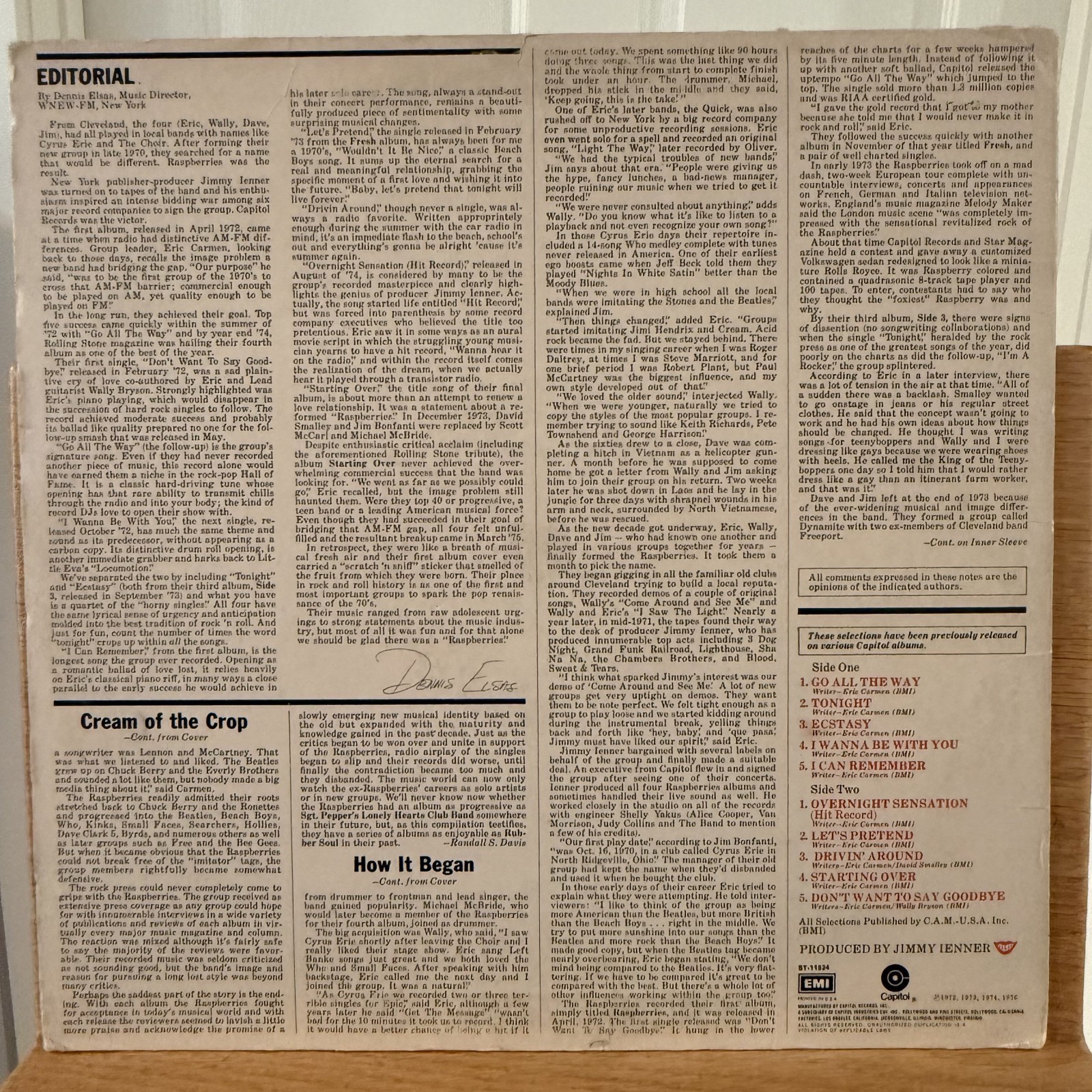 Raspberries Best Vinyl LP Capitol ST-11524 Go All the Way I Wanna Be With You