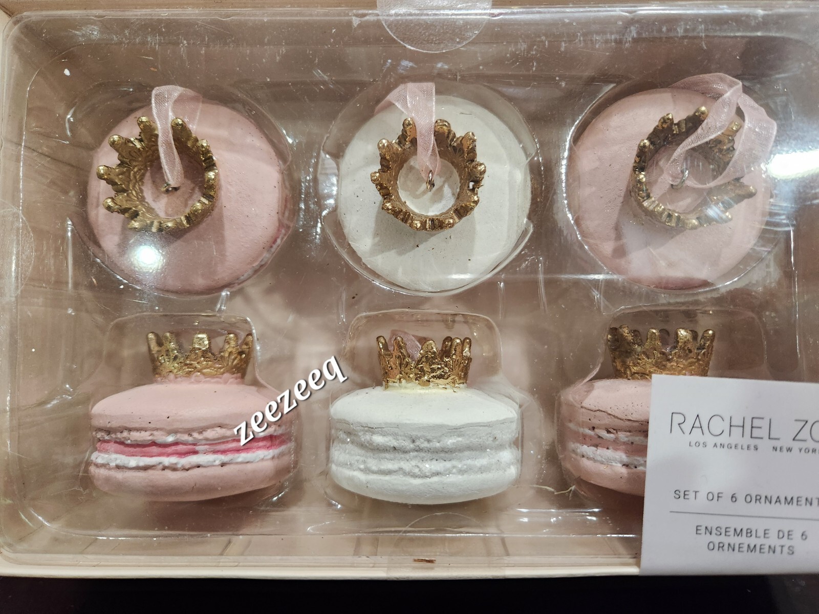 Rachel Zoe Valentines Resin Macaroon Crown Ornaments Pink White Decor NWT