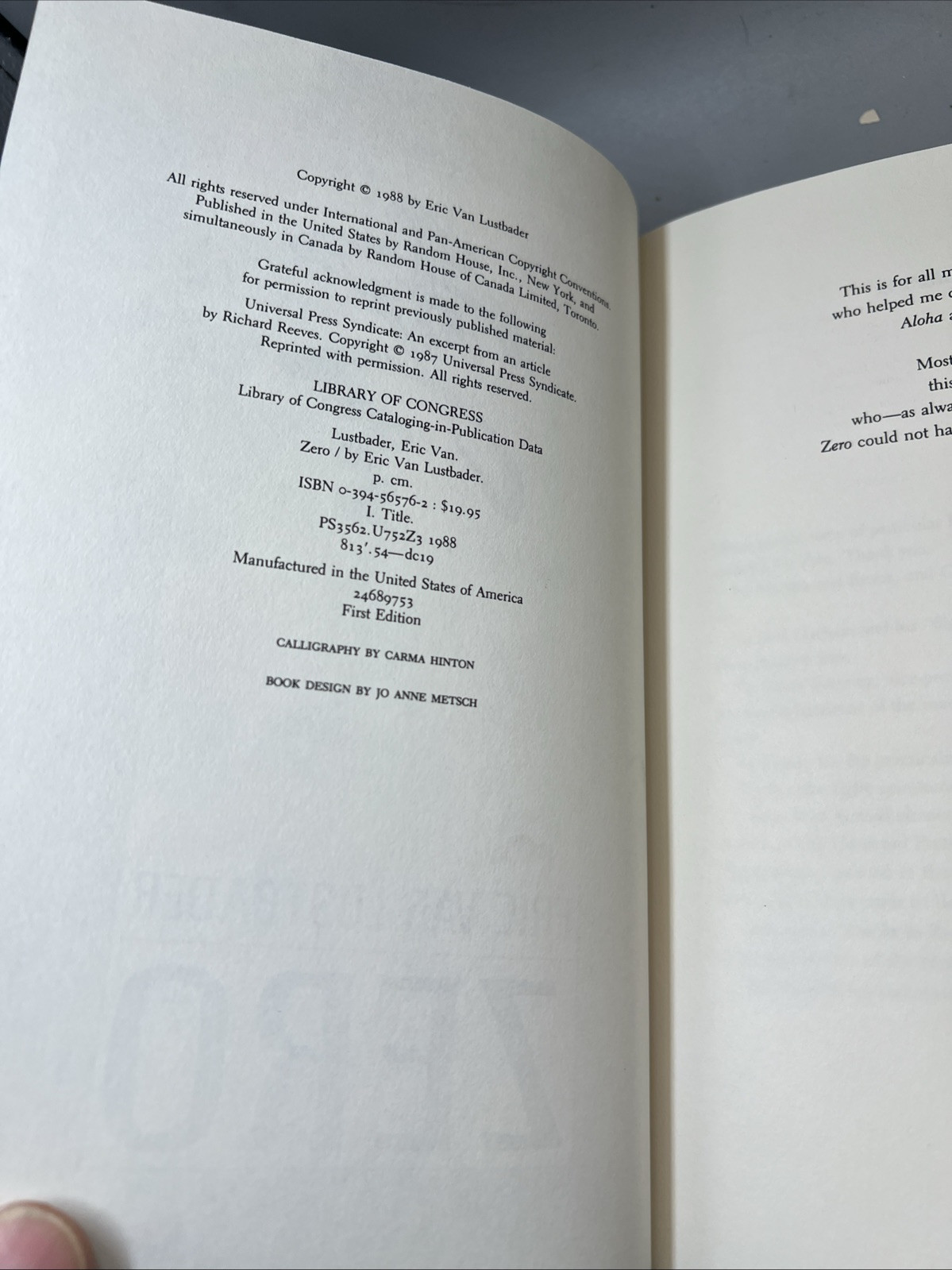 Zero by Eric Van Lustbader (1988, Hardcover) First Edition