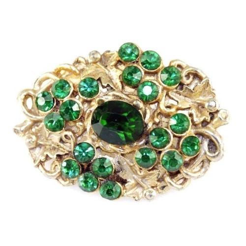Fancy Vintage Brooch Goldtone Emerald Green and similar items