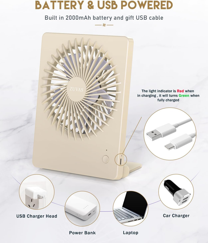 Desk Fan Battery Operated Fan Rechargeable 180°Tilt Folding Personal Fan Ultra Q