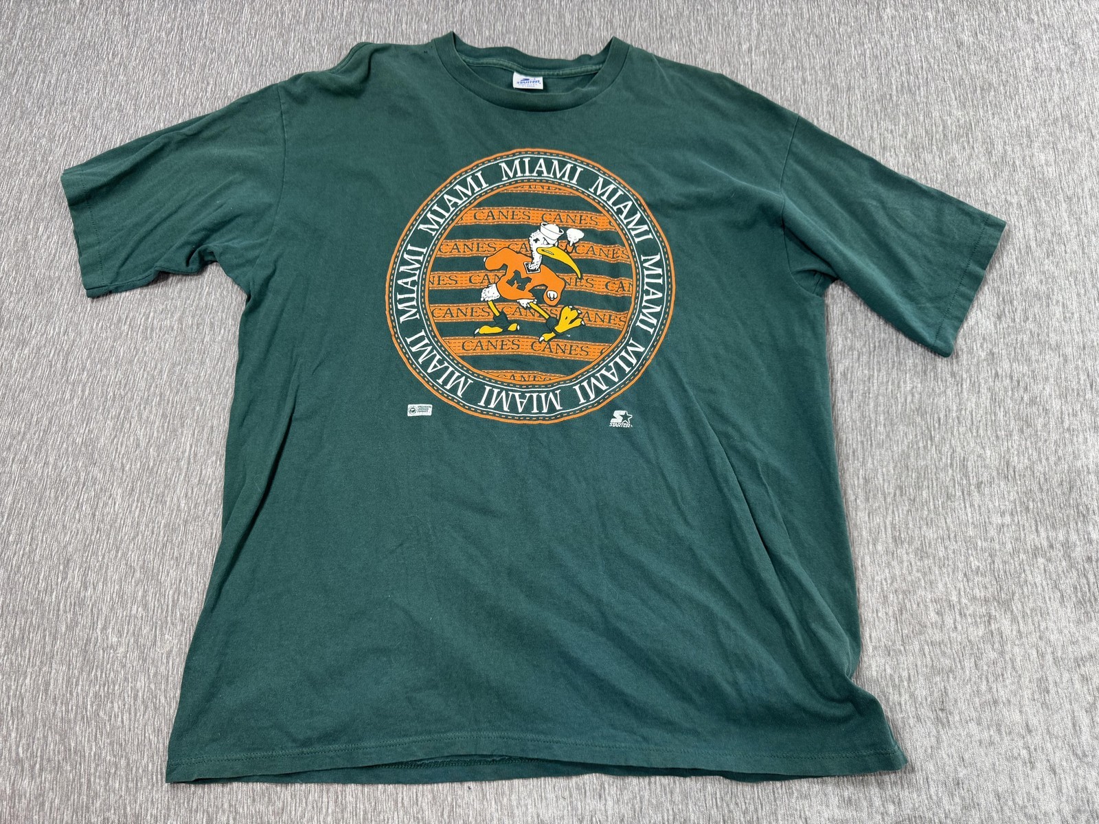 Vintage Miami Hurricanes Shirt Mens XL Green Starter Sebastian Smoking Football