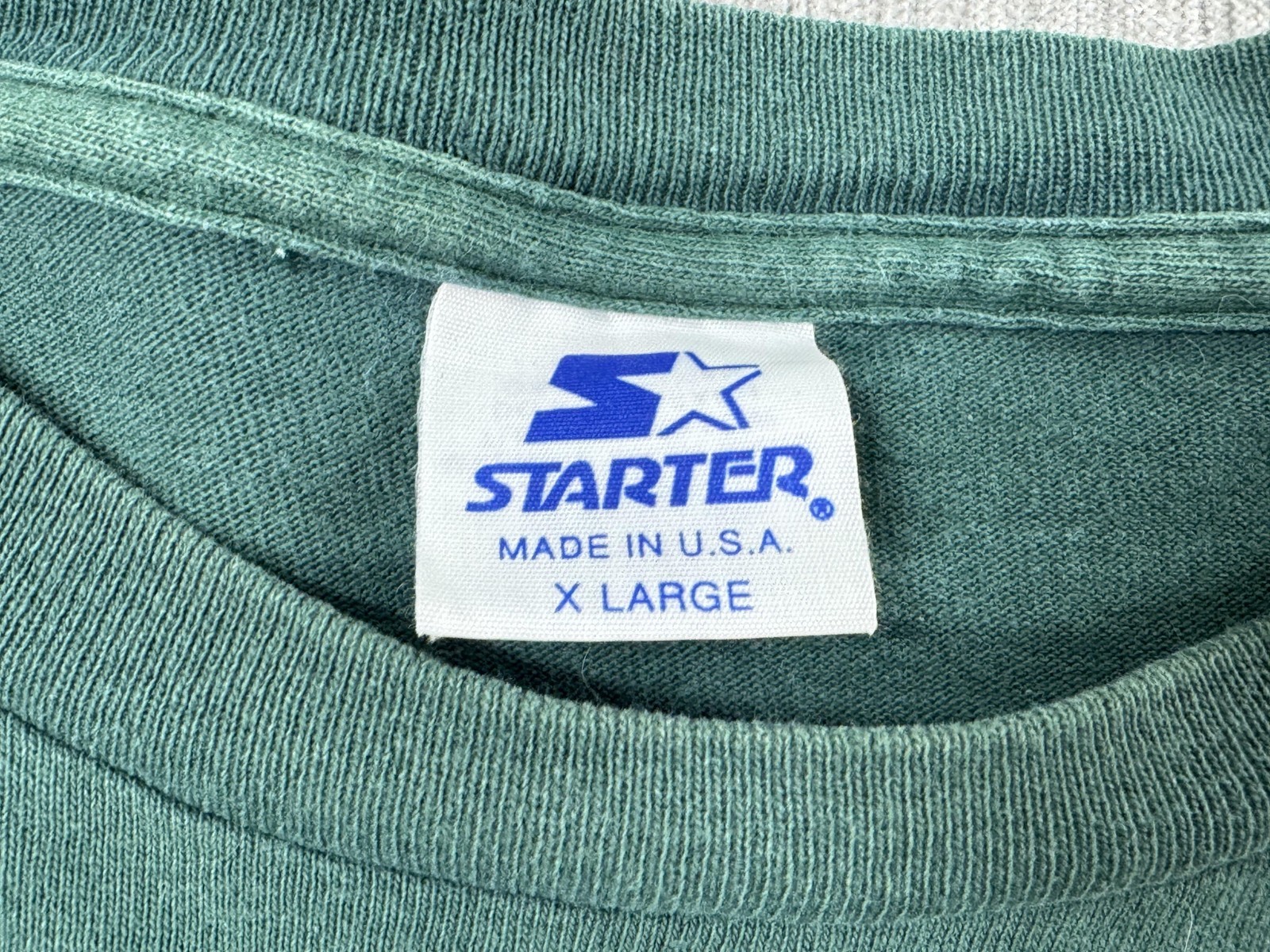 Tag/Care info: Starter Sportswear, New Haven, CT; Machine wash warm; Tumble dry low; Do not bleach or dry clean; RN 67879
