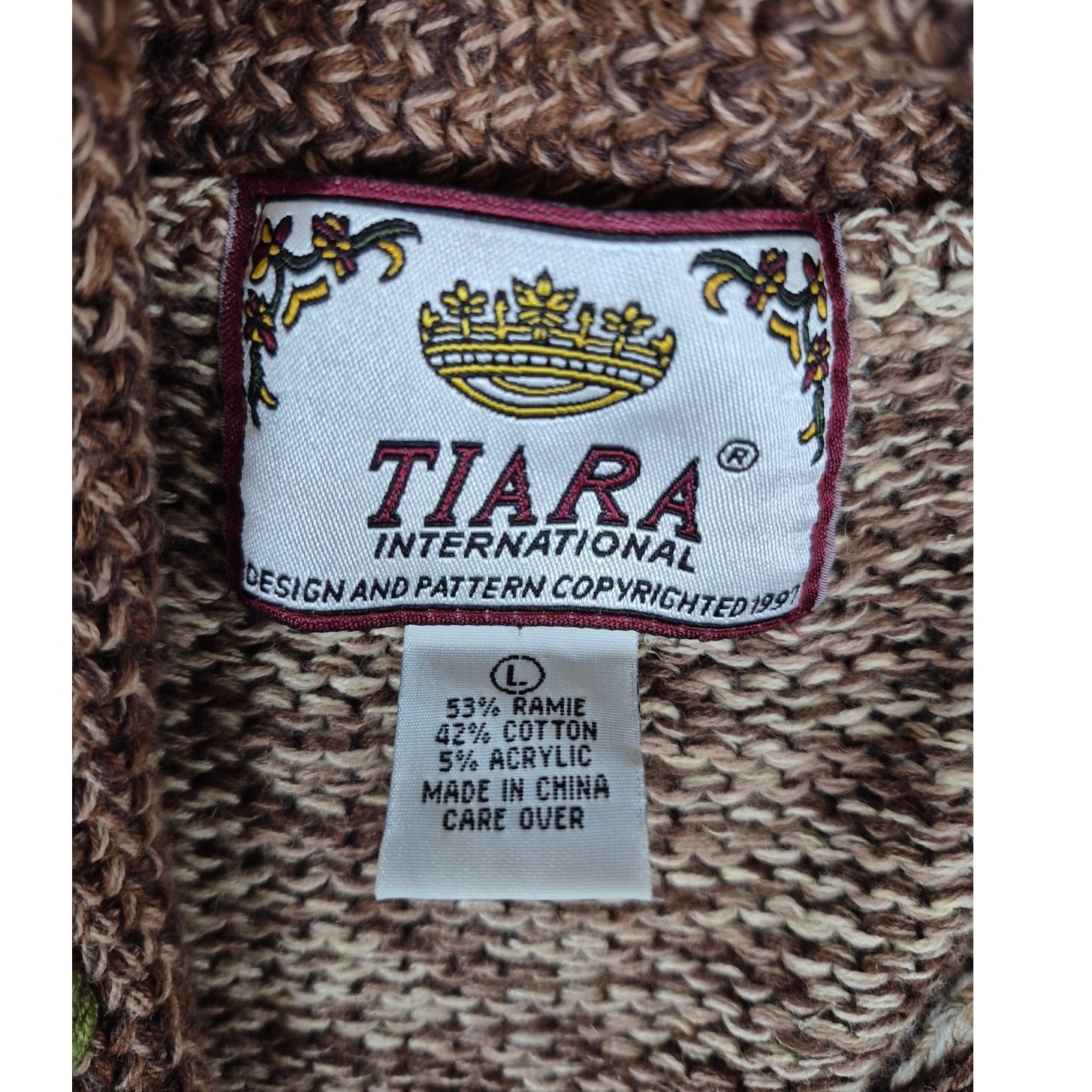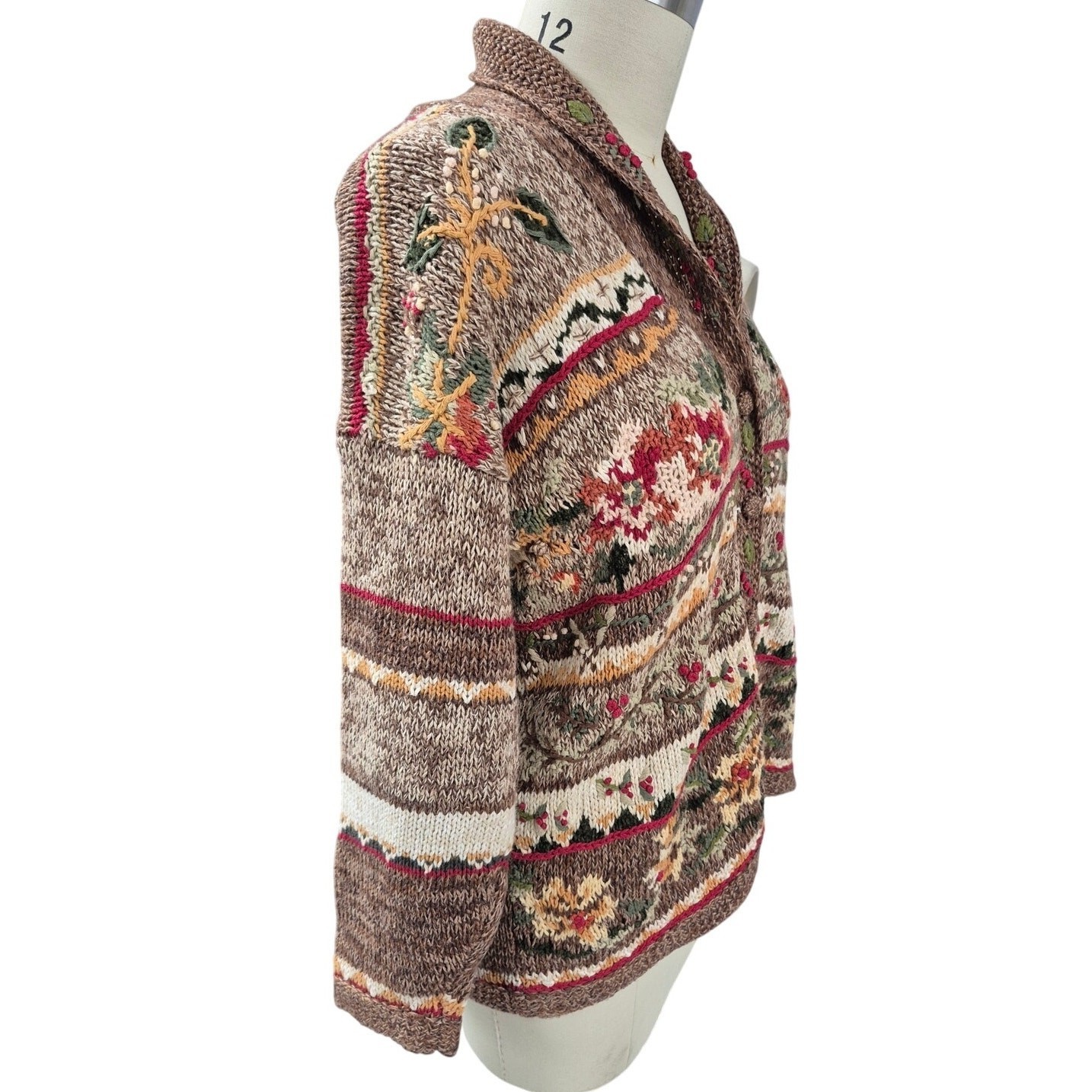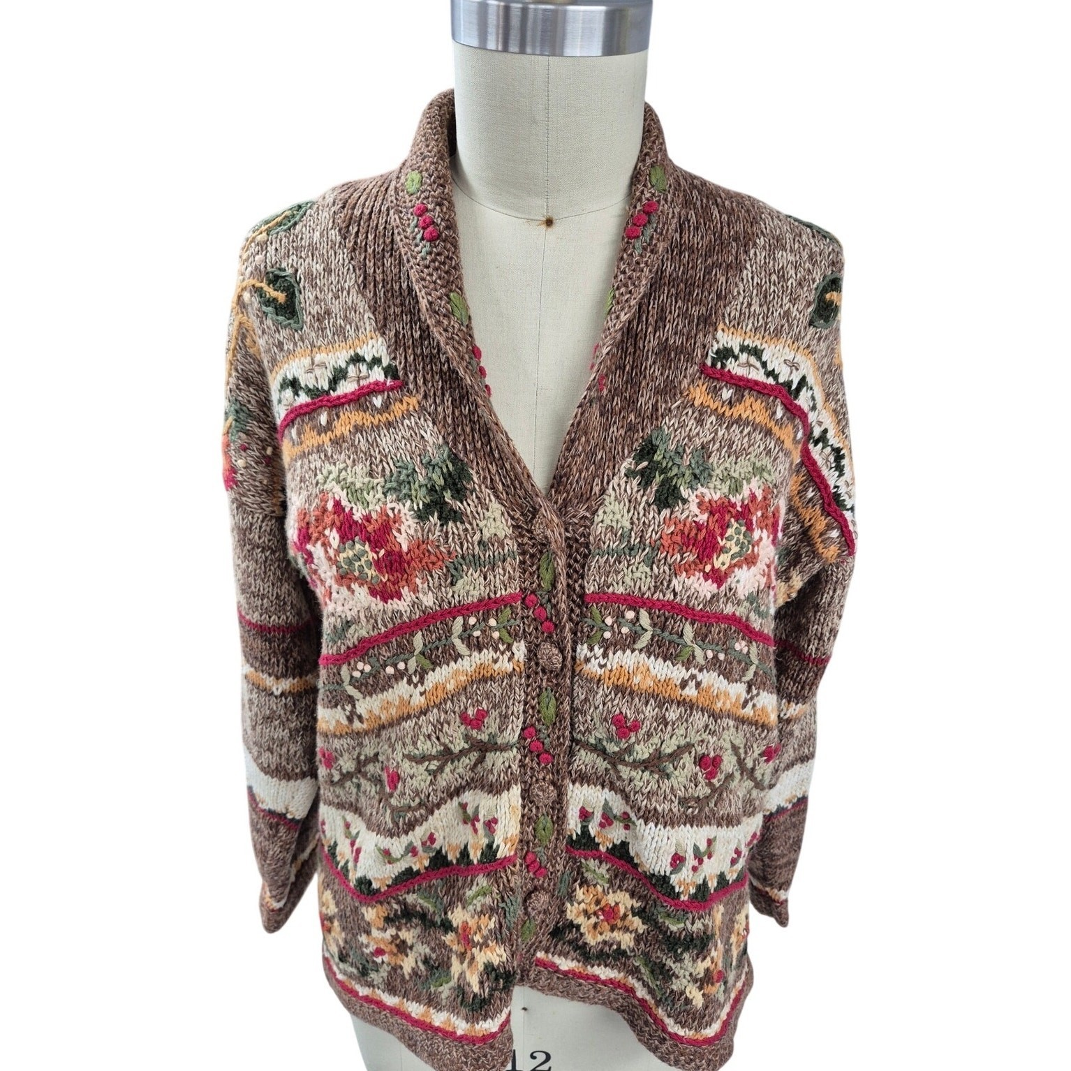 Vtg 1991 Tiara International Cottagecore Floral Knit Cardigan Women L Cotton
