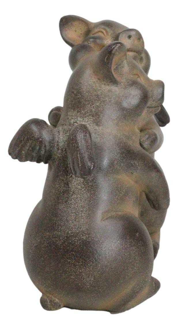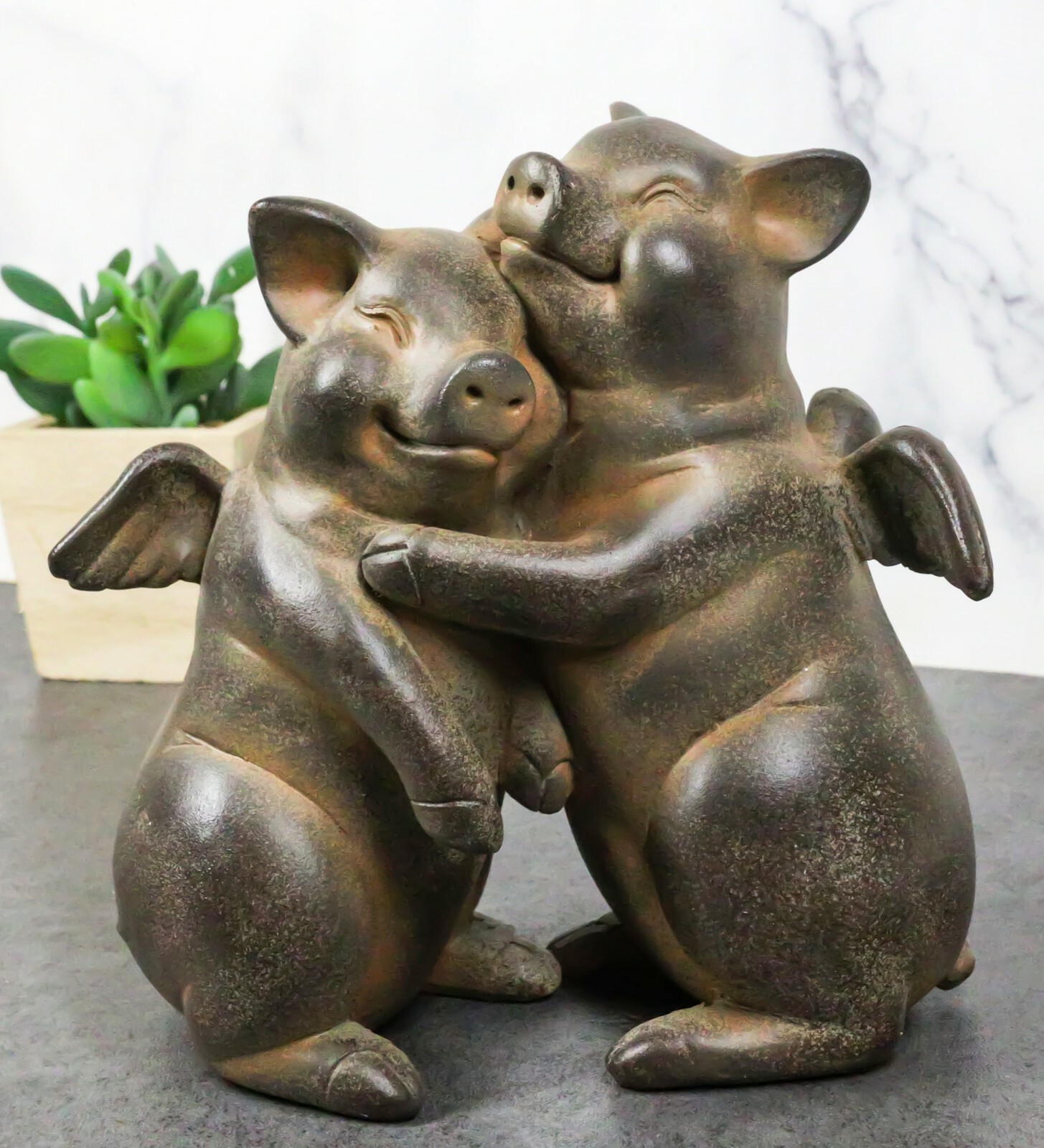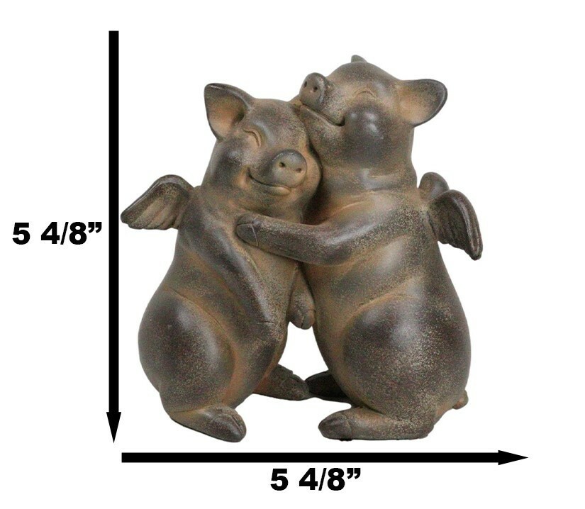 ? Elevate your decor with a touch of whimsy and charm through our Rustic Bronzed Winged Pig Couple Dancing Figurine. This delightful piece combines the unexpected with the rustic, featuring a bronzed pair of winged pigs engaged in a lively dance. The carefully crafted details, from the textured wings to the charming dance poses, add a touch of elegance to the whimsical theme. Perfect for those who appreciate a blend of humor and sophistication in their decor.