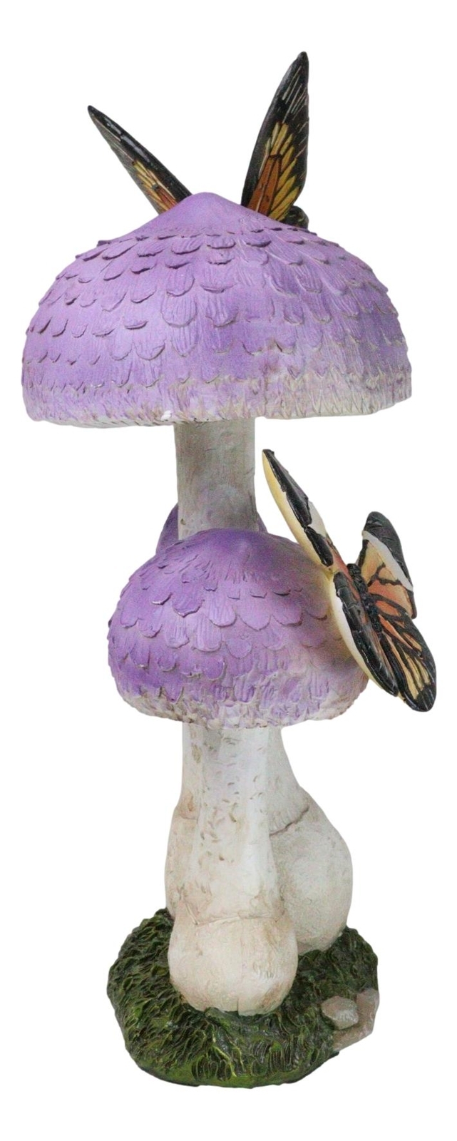Enchanted Fairy Garden Purple Toadstool Mushrooms Monarch Butterflies Figurine