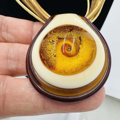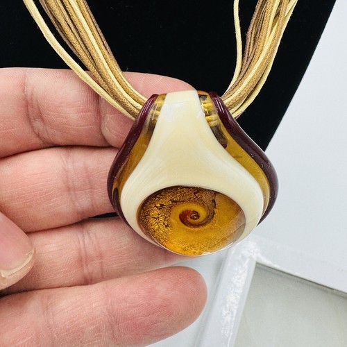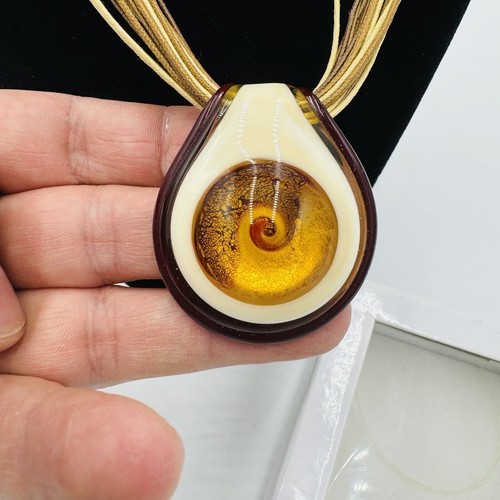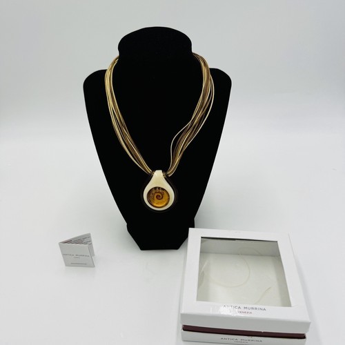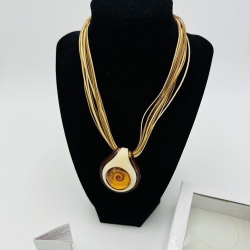 Elevate your fashion game with this stunning Antica Murrina Venetian Art Glass Amber Swirl Multi Straps Necklace straight from Italy. The exquisite amber beige color combined with the unique glass pendant shape makes this necklace a true work of art. The lobster closure ensures a comfortable and secure fit while the multi straps add an extra touch of style.