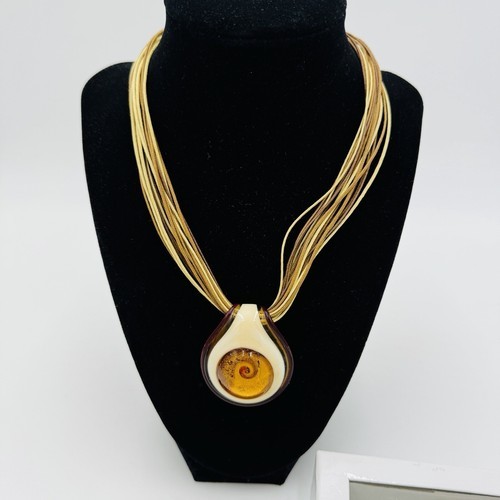 Antica Murrina Venetian Art Glass Amber Swirl Multi Straps Necklace Italy